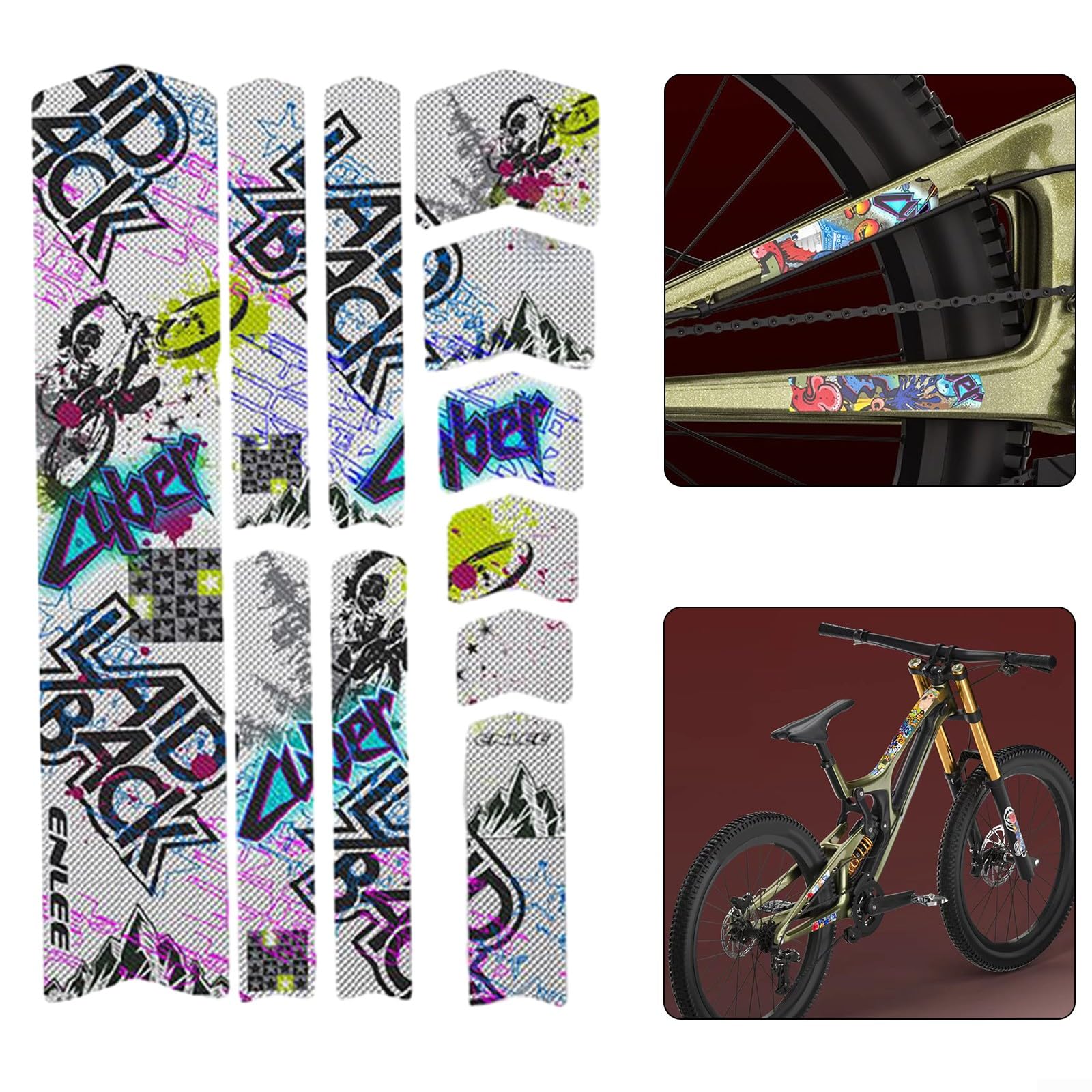 Mach dein Fahrrad sicherer und stylischer! Diese bunten Rahmen-Aufkleber reflektieren nicht nur super bei Dunkelheit, sondern geben deinem Bike auch einen ganz individuellen Look. \\n\\nProdukteigenschaften: \\n• Material: Hochwertiger TPU-Kunststoff \\n• Design: Bunter Wald \\n• Starke Reflektion für bessere Sichtbarkeit \\n• Wasserdicht und rutschfest \\n• Kratzfest und langlebig \\n\\nEinfache Anwendung: \\n• Schnell anzubringen \\n• Hinterlässt keine Kleberückstände \\n• Leicht zu entfernen \\n• Passt sich jedem Rahmen an \\n\\nSicherheitsvorteile: \\n• Macht dich im Verkehr besser sichtbar \\n• Reflektiert Scheinwerferlicht \\n• Erhöht die Sicherheit bei Nacht \\n• Schützt den Rahmen vor Kratzern \\n\\nEinfach auf den Fahrradrahmen kleben, festdrücken und schon bist du sicherer unterwegs! Die Aufkleber sind in verschiedenen Größen erhältlich und passen auf die meisten Fahrradrahmen. Perfekt für alle, die Wert auf Sicherheit und Style legen!