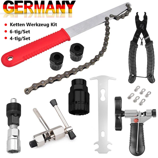 Boah, dieses Fahrrad-Werkzeug-Set ist genau das, was jeder Hobby-Mechaniker braucht! Da ist alles drin, was du für die Wartung deines Bikes benötigst: Kettenpeitsche, Zahnkranzabzieher, Ritzelabzieher, Innenlager-Entferner und Innenlagerschlüssel - einfach alles in einem Set! Die Teile sind aus hitzebehandeltem Stahl und deshalb super robust und langlebig. Ob du an Shimano, SRAM oder SunRace Kassetten schraubst - das Werkzeug passt perfekt. Die Kettenpeitsche arbeitet mit 6- bis 11-fach Kassetten und verhindert, dass sich das Rad dreht, während du das Ritzel löst. Der Zahnkranzabzieher hat sogar einen Führungsstift für noch mehr Präzision. Und der Innenlagerschlüssel passt für 20-Zahn-Vierkant-Tretlager - einfach mit 24mm Schlüssel oder 1/2 Zoll Knarre bedienen. Die ergonomischen Griffe liegen super in der Hand und rutschen nicht. Egal ob du deine Kassette wechseln willst, das Tretlager erneuerst oder Centerlock-Bremsscheiben montierst - mit diesem Set machst du alles selbst. Spart ne Menge Geld in der Werkstatt und du lernst dein Bike besser kennen! Perfekt für MTB, Rennrad oder Citybike - einfach unverzichtbar für jeden, der sein Fahrrad selbst wartet.