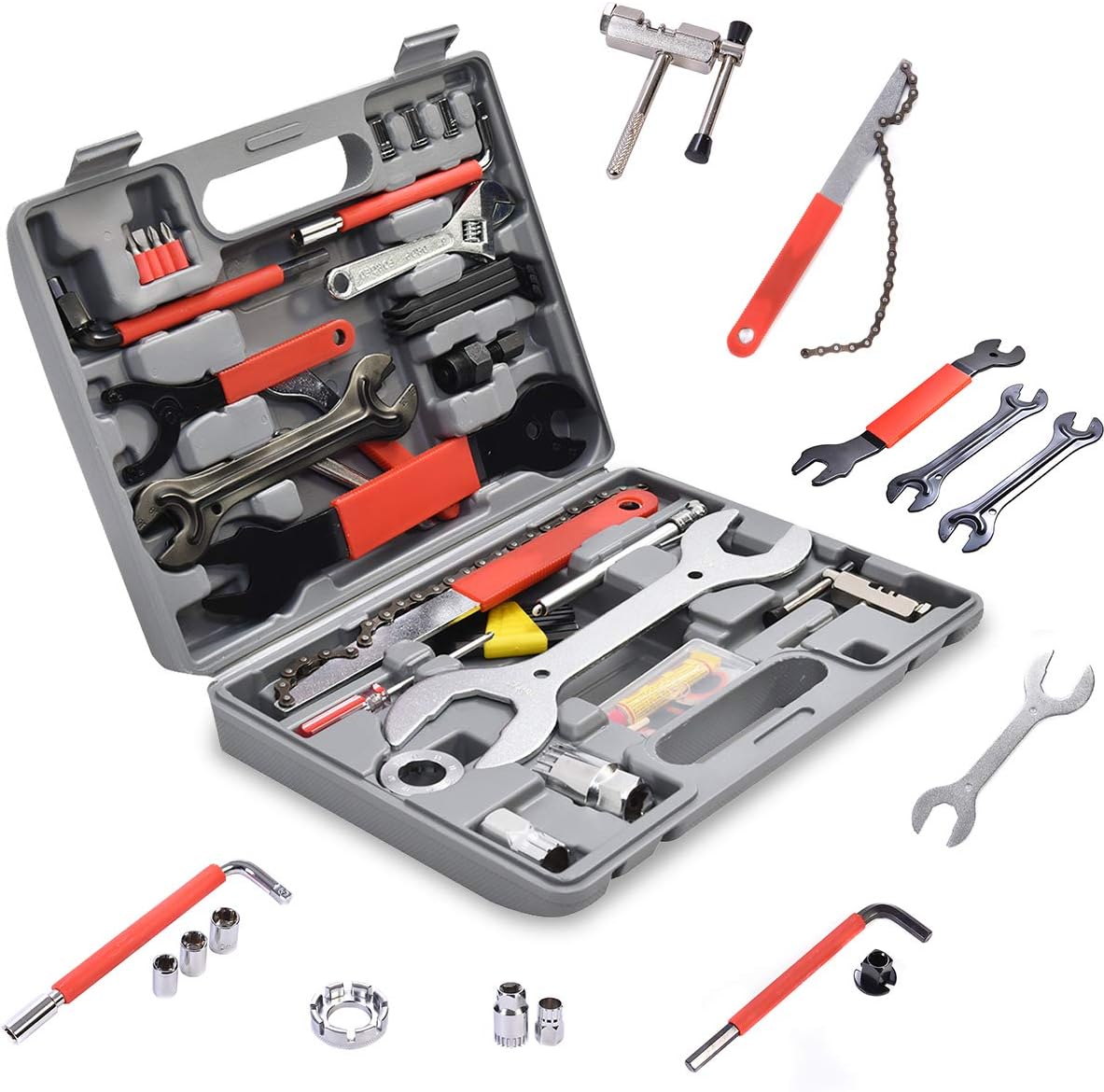 Für alle Pannen unterwegs! Dieses LALAGO Fahrrad-Werkzeugset hat alles, was du brauchst, wenn mal was am Rad ist. Die Mini-Ratsche mit 10 verschiedenen Bits (2-8mm, T25, T30, PH1, SL4) macht das Schrauben zum Kinderspiel. Aus rostfreiem Edelstahl - super langlebig! Im Notfall rettet dich das beiliegende Flickzeug mit 6 Pflastern und Reibeblatt. Zwei Kunststoff-Montagehebel helfen beim Reifenwechsel, und der Knochenschlüssel ist praktisch für Speichenarbeiten. Alles sicher verstaut in einer kompakten Aufbewahrungsbox - perfekt für die Satteltasche! Ob MTB, Rennrad oder Citybike, mit diesem Set bist du für die meisten Reparaturen gerüstet. Leicht, handlich und immer griffbereit. Mach deine nächste Tour sorgenfrei!