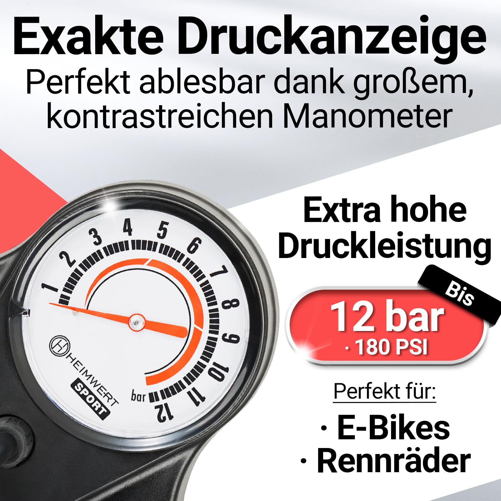 HEIMWERT Premium Fahrradpumpe - 12bar Mit Manometer Für Alle Ventile