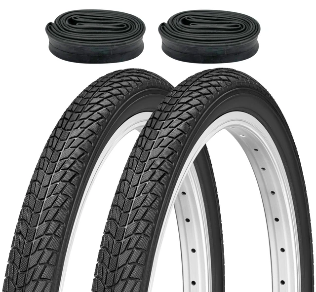 Bring Farbe auf die Straße! Diese bunten 20-Zoll-Fahrradreifen im Format 20x1.75 (47-406) passen perfekt für Graziella Citybikes und andere Kinderfahrräder. Im Set inklusive Butyl-Schläuche mit Presta-Ventil - alles was du für den Reifenwechsel brauchst.