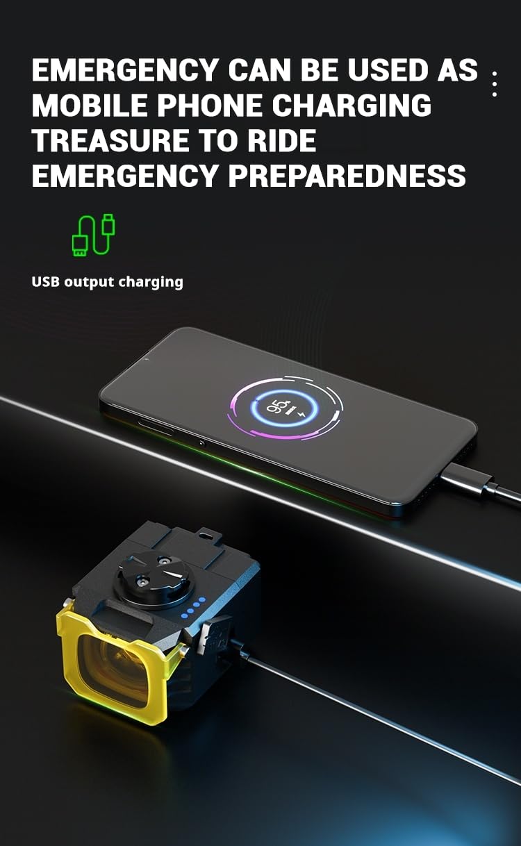 Sicher durch die Nacht mit diesem krassen Monkey Home Fahrradlicht! 1200 Lumen Helligkeit, 13 Modi und 3 Helligkeitsstufen - du siehst und wirst gesehen. Mit praktischer LCD-Batterieanzeige, 5800mAh Akku für bis zu 15 Stunden Laufzeit und Type-C Schnellladung. Das Beste: Es dient auch als Power Bank für dein Handy! STVZO zertifiziert - also komplett straßenzugelassen. Inklusive kostenlosem Rücklicht im Wert von 10€! Ein-Knopf-Montage, 360° drehbar, passt auf Lenker von 22-32mm. Mit 30 Tage Rückgaberecht und 1 Jahr Garantie. Dein perfekter Begleiter für nächtliche Fahrten!