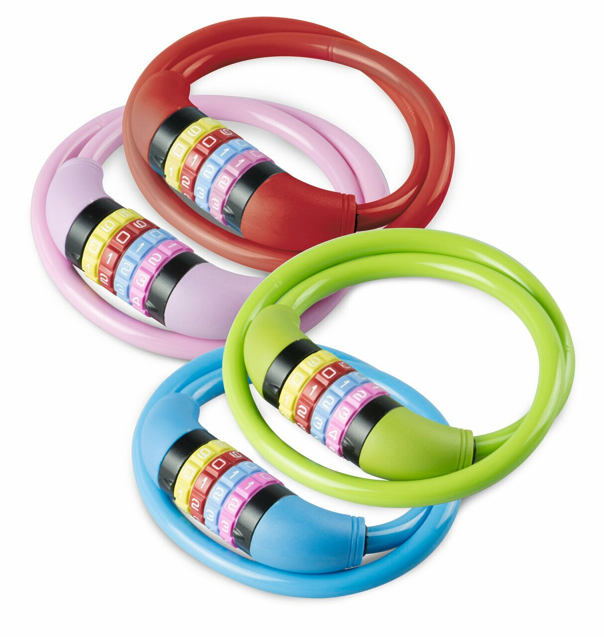 Perfekt für kleine Radfahrer! Dieses praktische 2er-Set mit Zahlenschlössern macht das Abschließen zum Kinderspiel. Die 4-stellige Kombination lässt sich ganz einfach selbst einstellen - so merken sich deine Kinder ihren Code super leicht. Robust genug für Fahrräder, Roller und Skateboards, aber trotzdem leicht und handlich. Die großen Zahlen sind gut lesbar und der Mechanismus läuft super smooth. Mit zwei Schlössern im Pack können Geschwister ihre Räder sichern oder du hast gleich ein Ersatzschloss parat. Bringt Kindern spielerisch bei, verantwortungsvoll mit ihrem Eigentum umzugehen. Einfach Code einstellen, ums Rad wickeln, zuklicken - fertig!