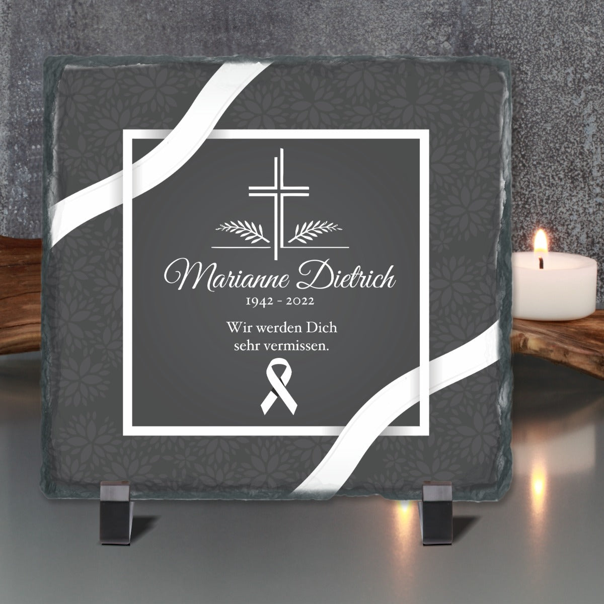 Love Faith Gedenktafel Schiefer 15x15cm - Personalisierbar Mit Foto & Daten