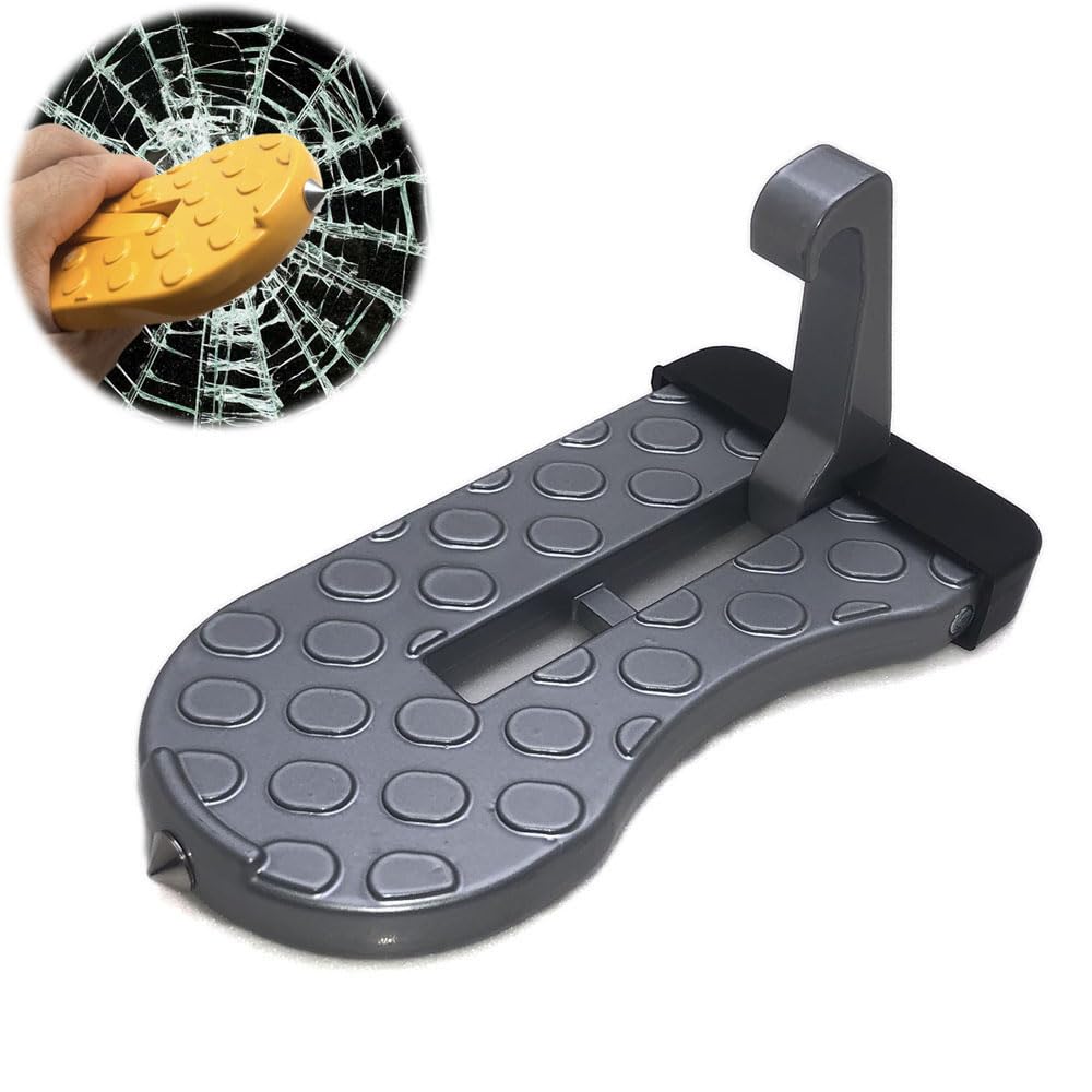 Praktisches Türpedal für dein SUV! Dieses faltbare Aluminium-Pedal passt perfekt an Qashqai J11 (2014-2019) und X-Trail T32 (2014-2020). Hält bis zu 200kg stand - ideal zum Be- und Entladen des Dachs. Mit weichem Gel-Schutz, damit dein Lack nicht zerkratzt. Super als Sicherheitshammer im Notfall - einfach die Scheibe einschlagen. Einfach am Türrahmen einhängen, keine Montage nötig. Kompakt 14,8x7,5x8,5cm - passt in jedes Handschuhfach. Auch für andere SUVs, Wohnmobile und LKWs geeignet. Macht das Leben leichter!