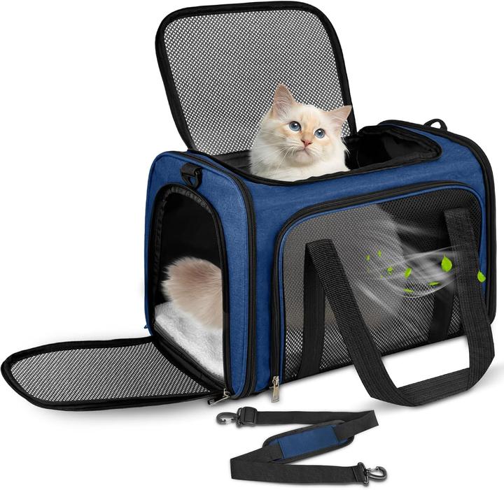 Dein Liebling reist bequem und sicher! Diese praktische Tragetasche für Haustiere bis 10kg ist super für Tierarzt-Besuche, Reisen oder einfach unterwegs. Mit Mesh-Fenstern für gute Belüftung und weicher Polsterung für Komfort. Faltbar und platzsparend - einfach zusammenlegen und verstauen. Mit Sicherheitsgurt fürs Auto und Flucht-Schutz. Maße: 45x25x28cm. Auch als Handtasche oder Rucksack nutzbar. Waschbar und robust - dein Tier wird es lieben! Perfekt für Katzen, kleine Hunde und andere Kleintiere.