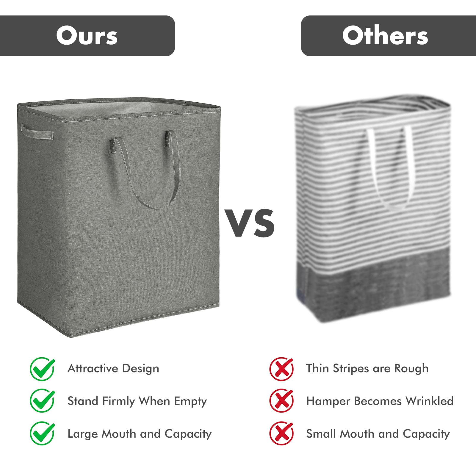 Endlich Ordnung im Wäschechaos! Dieses 2er-Set mit je 110 Litern Fassungsvermögen ist perfekt zum Sortieren von weißer und bunter Wäsche. Die Maße von 57x31x62cm bieten reichlich Platz und die langen Griffe machen das Tragen super einfach. Aus wasserdichtem Baumwoll-Leinen-Material sind die Körbe nicht nur praktisch, sondern sehen auch noch gut aus. Wenn sie mal nicht gebraucht werden, einfach zusammenklappen und platzsparend verstauen. Perfekt für Studentenwohnheime, kleine Apartments oder Gästezimmer. Die verstärkten Nähte an den Griffen verhindern lästiges Reißen. Einfach mit feuchtem Tuch abwischen - waschmaschinenfest sind sie allerdings nicht. Mit diesen Körben wird Wäsche sammeln zum Kinderspiel und sie sehen in Bad oder Schlafzimmer auch noch dekorativ aus. Einfach aufstellen, Wäsche rein und Ordnung genießen!