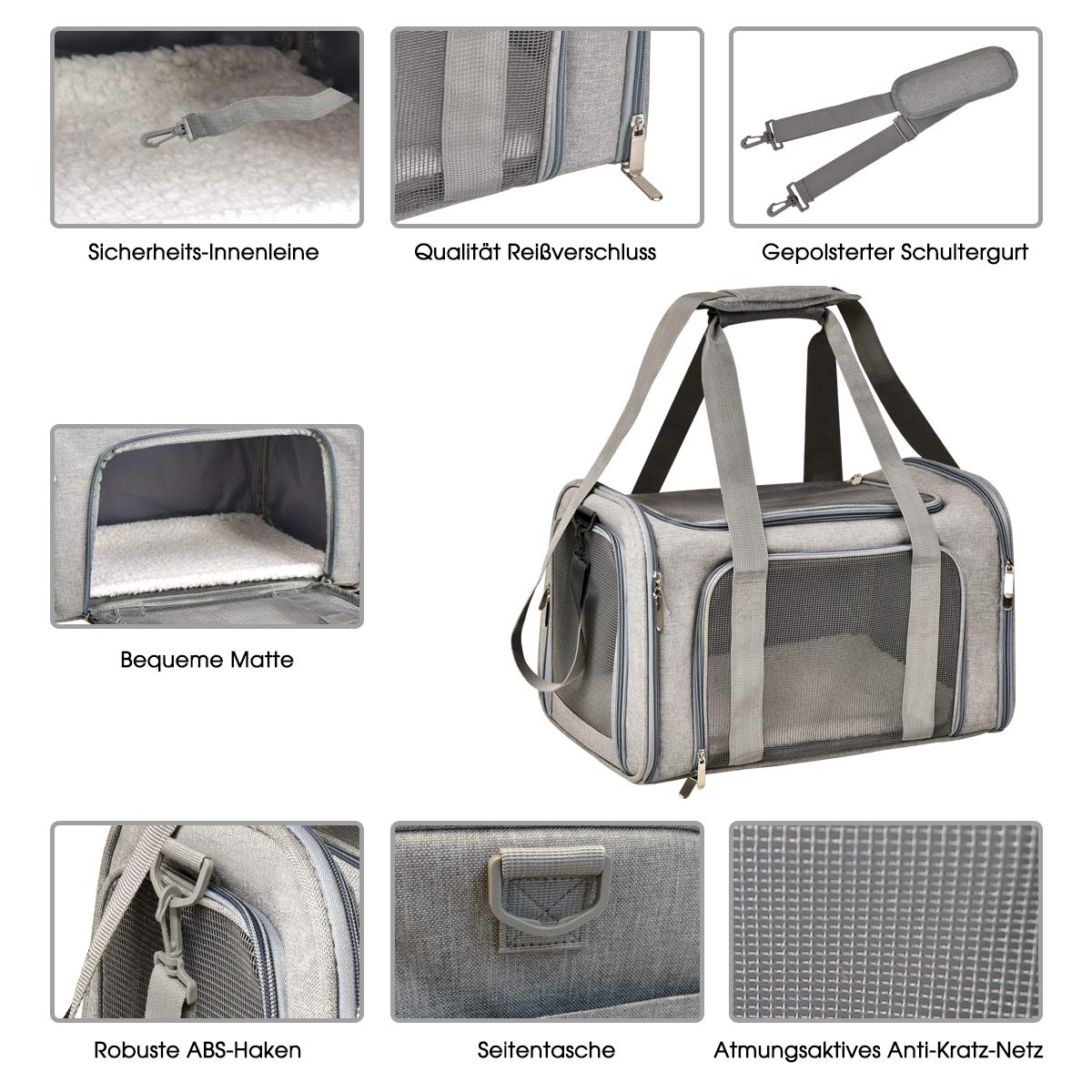 Dein kleiner Liebling verdient den besten Transport! Diese faltbare Transporttasche von Quuylin ist perfekt für Katzen und kleine Hunde bis 5 kg. Mit den Maßen 46x26x29 cm bietet sie genug Platz für dein Haustier, ohne zu klobig zu sein. Das coole Design hat auf allen vier Seiten atmungsaktives Mesh - so bekommt dein Tier immer genug Luft und kann alles beobachten. Der stabile Stahlrahmen hält auch bei unruhigen Tieren stand und die Sicherheitsgurte innen sorgen für extra Schutz. Praktisch: Die herausnehmbare Matte ist waschbar und die Seitentasche bietet Platz für Leckerlis und Spielzeug. Du kannst die Tasche an den Händen tragen, über die Schulter werfen oder sogar als Gepäckstück nutzen. Perfekt für Auto, Bahn oder Flugzeug - und wenn sie leer ist, faltest du sie einfach zusammen und verstaut sie platzsparend. Dein Haustier reist sicher und bequem!