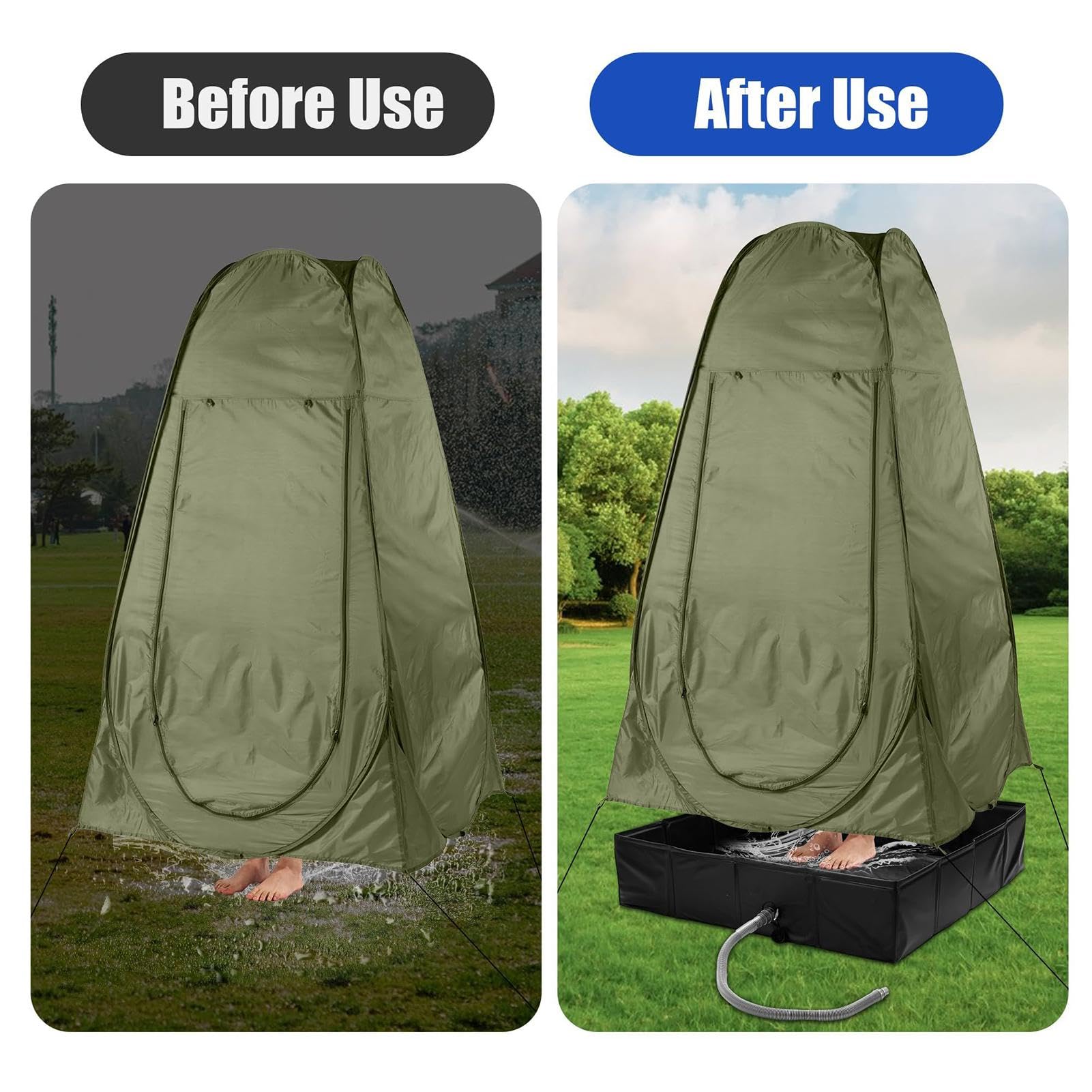 Endlich nicht mehr im Schlamm duschen müssen! Diese praktische Duschwanne für Camping-Ausflüge ist dein neuer bester Freund. Sie faltet sich super klein zusammen und ist superleicht zu transportieren. Aufgebaut misst sie 80x80x10 cm - da passt man bequem mit beiden Füßen rein. Das Material aus Oxford-Stoff und PVC ist richtig stabil und piekt nicht durch. Das coole Feature: Seitlich ist ein Ablaufventil mit 80 cm langem Schlauch dran. Einfach aufdrehen und das Wasser läuft ab, oder zudrehen und das Wasser für später aufheben. Perfekt nicht nur fürs Duschen im Zelt, sondern auch als Fußbad oder sogar als Mini-Pool für die Kids. Und wenn du einen Hund hast - der wird dich lieben! So ein Bad im Freien war noch nie so einfach. Einfach aufstellen, fertig!