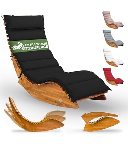 Entspannung in Perfektion! Diese wunderschöne Schwungliege aus massivem Akazienholz bringt puren Komfort in deine Erholungszone. Die ergonomische Form passt sich deinem Körper an, während die einzigartige Wippfunktion für extra Entspannung sorgt.
