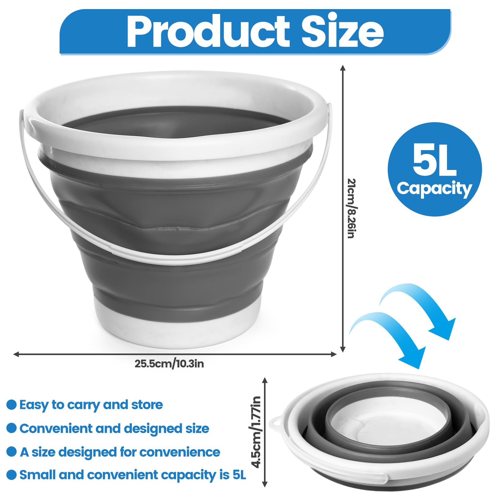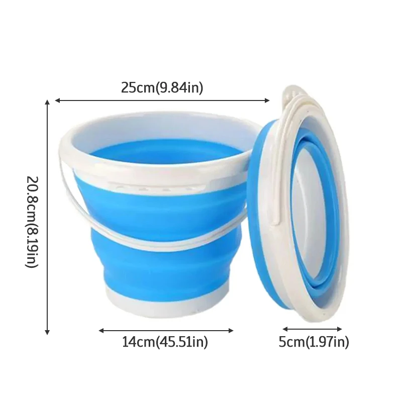 Der platzsparende Alleskönner! Dieser faltbare Eimer aus hochwertigem TPR und PP-Kunststoff ist nur 5 cm flach, wenn zusammengeklappt - spart über 70% Platz. Volle 5 Liter Fassungsvermögen, Maße 25 x 20 cm. Mit praktischem Tragegriff und Aufhängebohrung für Haken. Superleicht und einfach zu transportieren. Perfekt für Angeln, Camping, Autowäsche, Gartenarbeit oder als Wäscheeimer. Einfach auseinanderziehen und schon ist er einsatzbereit. Robust und langlebig - hält auch bei regelmäßiger Nutzung. Der ideale Begleiter für unterwegs und daheim!