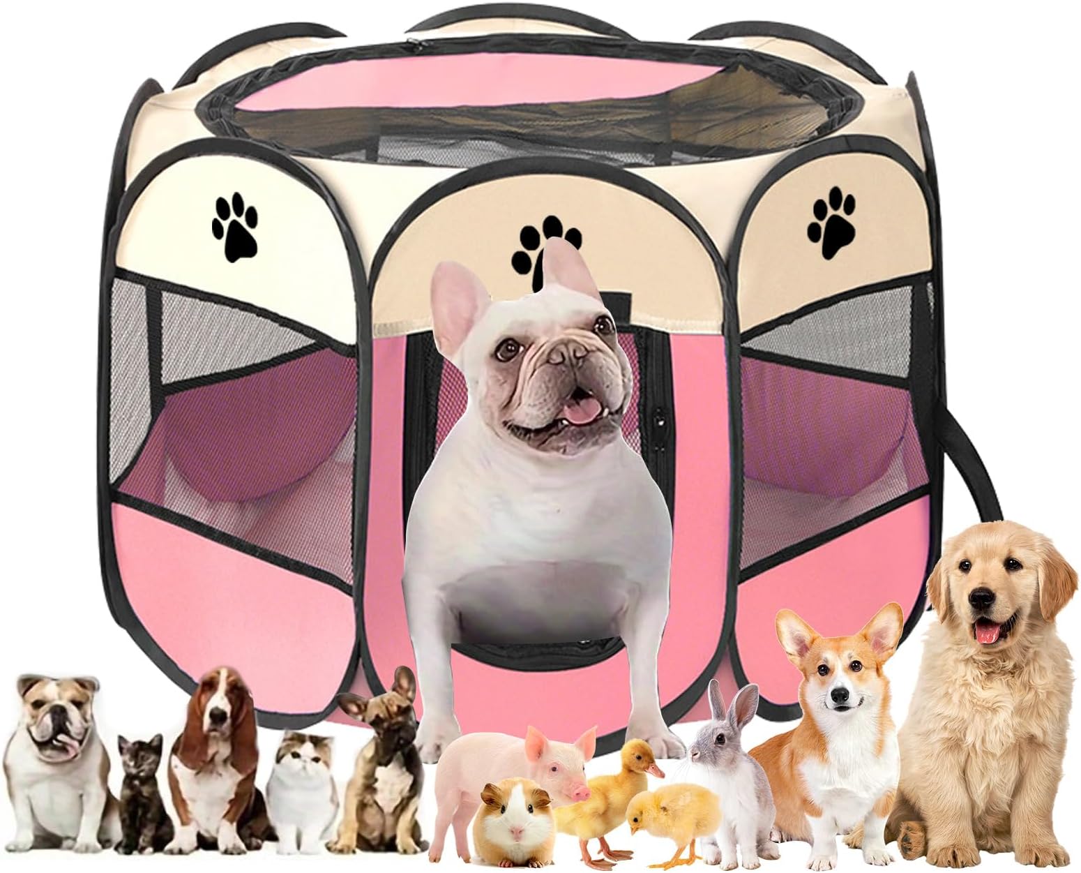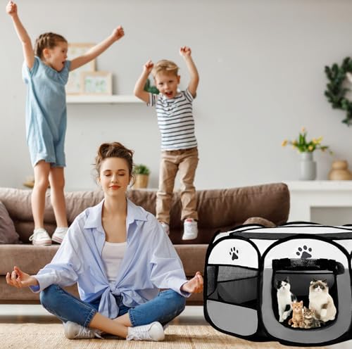 Suchst du eine praktische Lösung für deine kleinen Mitbewohner? Dieser faltbare Haustier-Laufstall ist genau das Richtige! Mit den Maßen 100x100x38cm bietet er genug Platz für Hunde, Katzen, Kaninchen oder andere Kleintiere. Das coole Hexagon-Design sieht nicht nur gut aus, sondern gibt deinem Tier auch freie Sicht nach allen Seiten. Besonders praktisch: Der Reißverschluss oben verhindert, dass deine flinken Freunde ausbüxen. Mach dir keine Sorgen über Flecken - der Boden ist aus wasserdichtem 190T Polyester und lässt sich easy reinigen. Aufbau? Kein Problem! Der Laufstall springt quasi von selbst in Form und lässt sich genauso einfach wieder zusammenfalten. Perfekt für die Wohnung, aber auch für unterwegs. Ob als Schlafplatz, Spielbereich oder sicherer Rückzugsort - dein Tier wird's lieben. Und wenn du mal nicht unterwegs bist, klappst du ihn einfach platt und verstaukst ihn in der mitgelieferten Tragetasche. Einfacher geht's nicht!