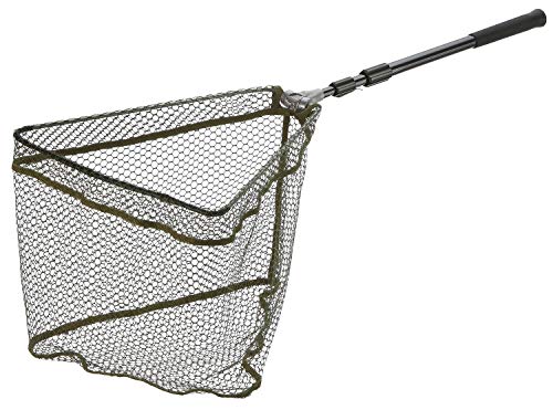 Das ABS-Material am Griff ist rutschfest und liegt gut in der Hand. Das Nylon-Netz mit Gummibeschichtung schont die Fischschuppen und trocknet schnell. Besonders praktisch: Der Kescher lässt sich dreistufig zusammenfalten und ist sofort wieder einsatzbereit.