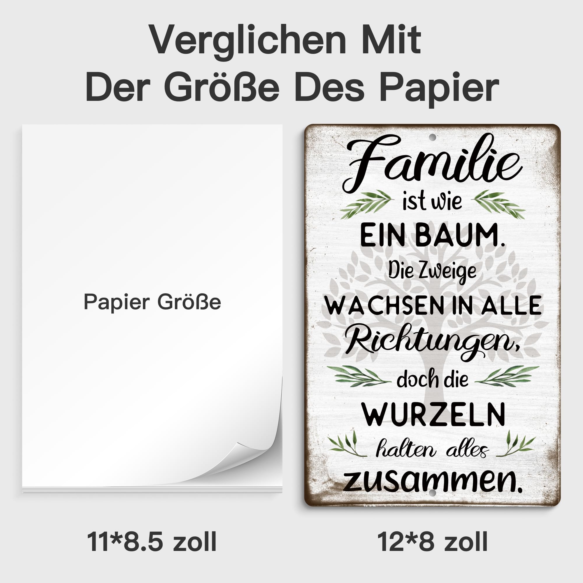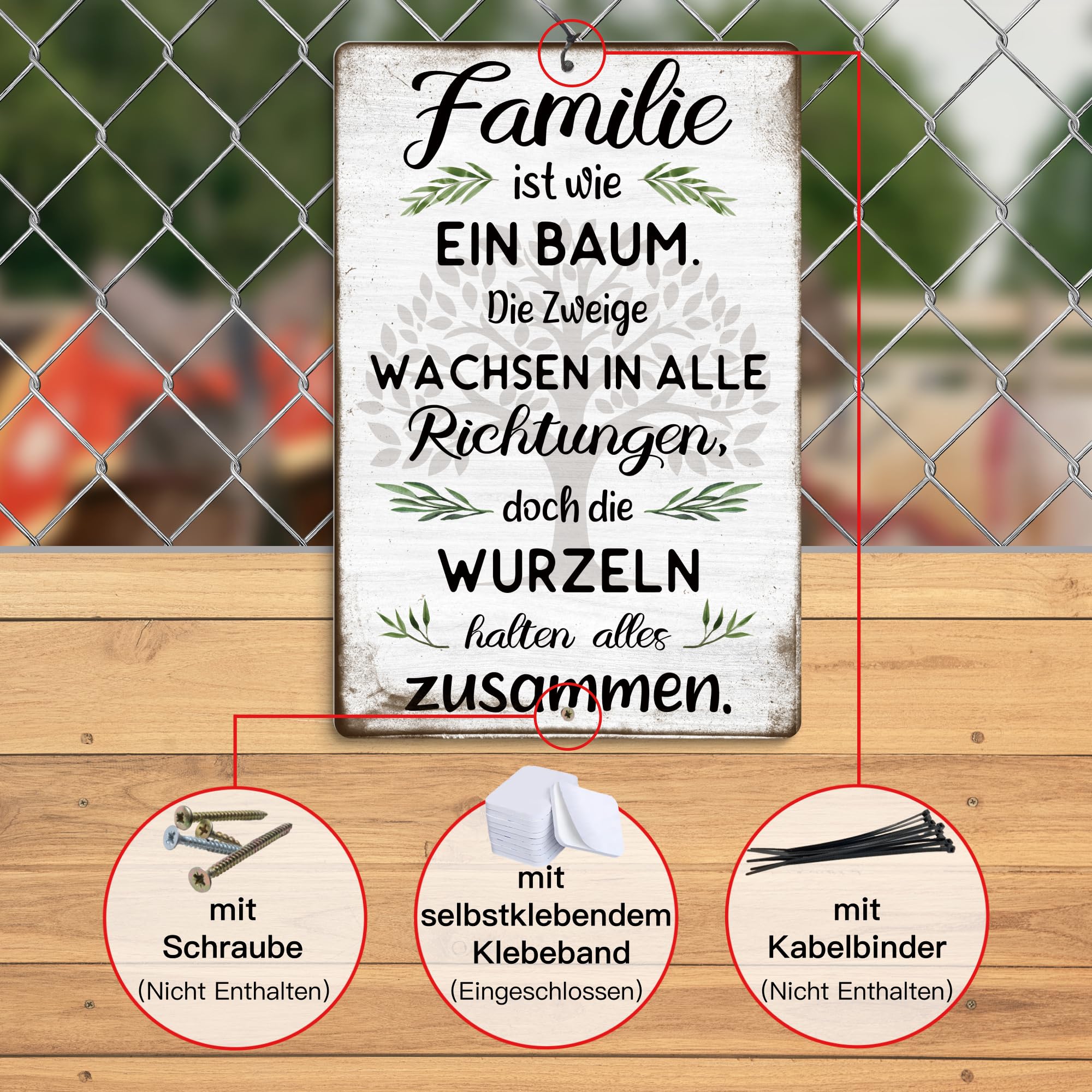 Bring Charme und Gemütlichkeit in dein Zuhause! Dieses wunderschöne Blechschild von Putuo Decor mit dem Spruch 'Familie ist wie ein Baum' ist ein echter Hingucker für jede Wand. Mit den Maßen 30x20cm passt es perfekt in Wohnzimmer, Flur oder Eingangsbereich. Aus robustem Metall gefertigt, ist das Schild nicht nur langlebig, sondern auch wasserdicht und behält seine tolle Optik. Die vier vorgebohrten Löcher machen die Montage super einfach - einfach aufhängen und schon verbreitet es seine warme Botschaft. Der Vintage-Stil mit rustikalem Charme passt zu fast jedem Einrichtungsstil und schafft sofort eine gemütliche Atmosphäre. Perfekt als Geschenk für Freunde oder Familie, die ihr Zuhause mit persönlichen Akzenten verschönern wollen. Einfach aufhängen und sich jeden Tag an der inspirierenden Botschaft erfreuen! Ein echter Eyecatcher der gute Laune macht.