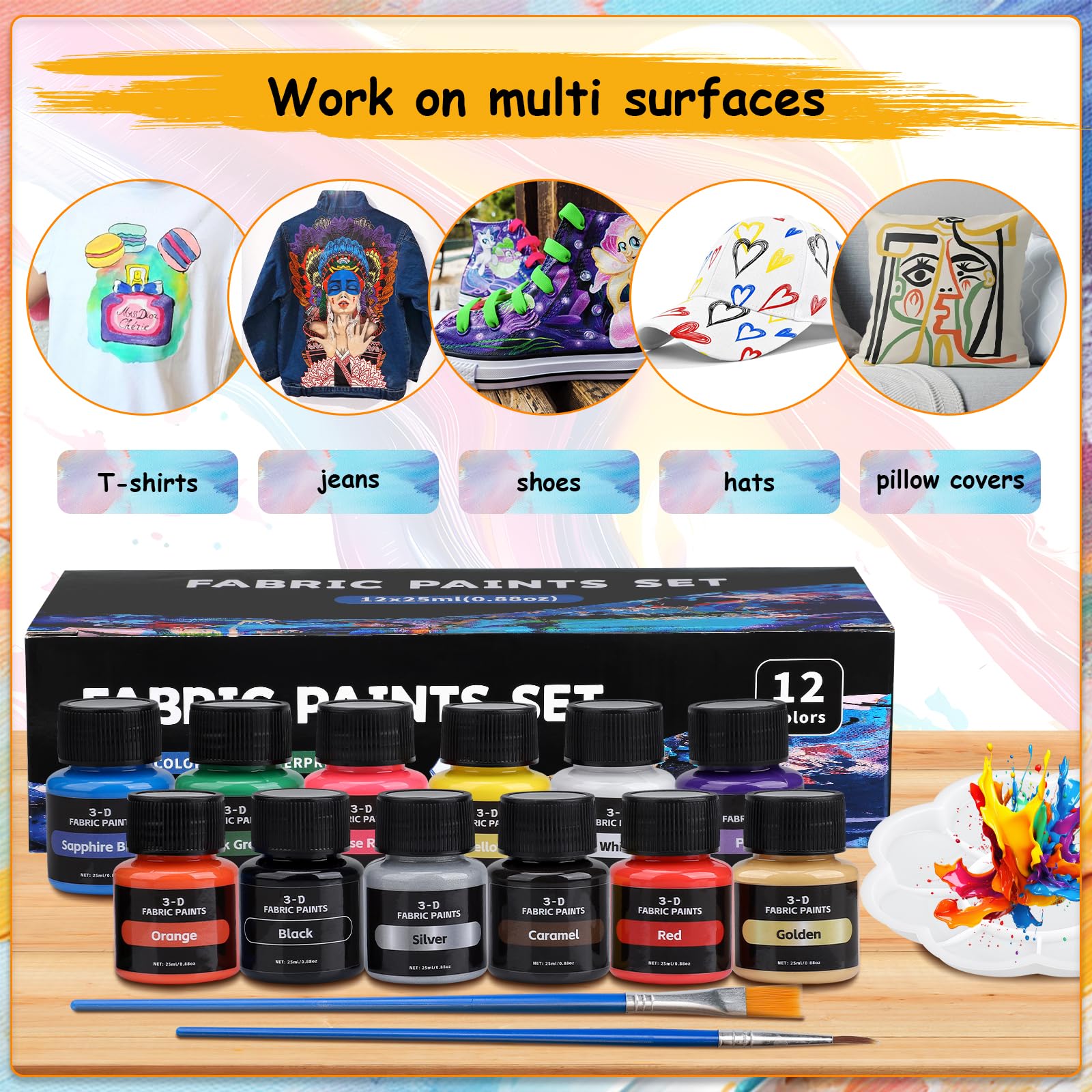 Entfessle deine Kreativität! Dieses Textilfarbe-Set von Altaroo enthält 12 lebendige Farben à 6ml plus Pinsel für deine DIY-Projekte. Die hochpigmentierten Farben decken sowohl auf hellen als auch dunklen Stoffen perfekt ab und sind nach dem Trocknen waschmaschinenfest. Kein Bügeln nötig - einfach malen, trocknen lassen (4-48 Stunden je nach Schichtdicke) und waschen! Ideal für T-Shirts, Jeans, Taschen, Schuhe und Kissenbezüge. Die Farben sind lichtbeständig, ungiftig und für synthetische sowie natürliche Fasern geeignet. Perfekt für Anfänger und Profis, um individuelle Designs zu kreieren. Das Set eignet sich auch super als Geschenk für kreative Köpfe. Einfach auf sauberen, trockenen Stoff auftragen und der Fantasie freien Lauf lassen - deine persönlichen Textil-Kreationen warten darauf, Realität zu werden!