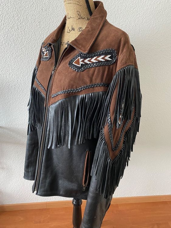 Wow, diese Faux Lederjacke ist der absolute Hingucker! Im lässigen Western-Style mit coolen Fransen und Quasten verleiht sie jedem Outfit sofort Cowboy-Charme. Als Crop-Jacke sitzt sie perfekt über deinen Lieblingsshirts oder Kleidern. Aus hochwertigem Kunstleder gefertigt, das sich angenehm weich anfühlt und seine Form behält. Der körperbetonte Schnitt unterstreicht deine Silhouette wunderbar. Ohne Knöpfe - einfach überziehen und los geht's! Perfekt für Konzerte, Partys oder um deinem Alltags-Look einen extravaganten Touch zu verleihen. Ob zu Jeans, Rock oder Leggings - diese Jacke macht immer eine gute Figur. Sei bereit für Komplimente!