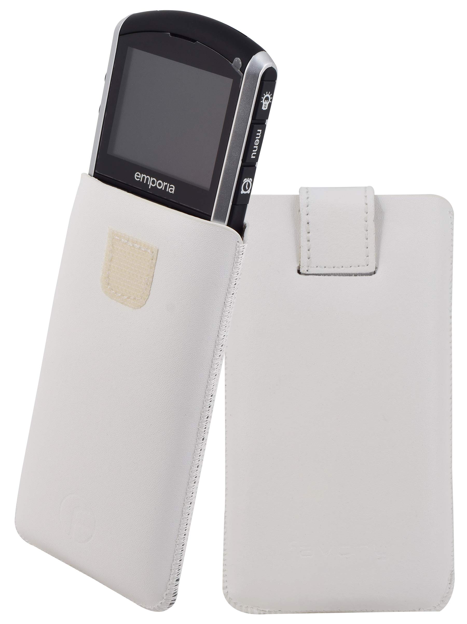 Schütze dein Emporia PURE in Style! Dieses originale Favory Etui aus echtem Rindsleder bietet optimalen Schutz vor Kratzern und Stößen. Die spezielle Polsterung und Nahttechnik schützt dein Handy sogar bei Stürzen. Das coole Feature: Eine praktische Lasche mit Rückzugsfunktion, mit der du das Handy ganz einfach herausziehen kannst. Innen mit Samt gefüttert, außen mit Klettverschluss für sicheren Verschluss. 100% Passgenauigkeit garantiert. Sieht nicht nur gut aus, sondern schützt dein Handy rundum!