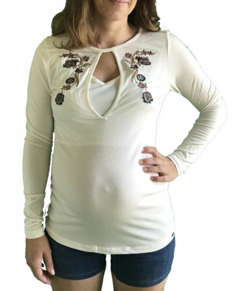 MijaCulture 2in1 Stillshirt & Umstandsshirt Mit Blumen/Federn - Praktisch Für Schwangerschaft Und Stillzeit