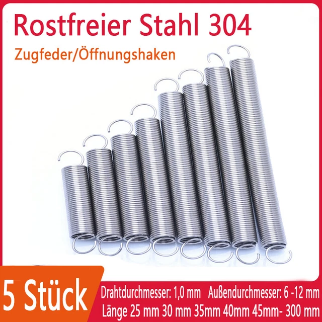 Für alle Bastler und Heimwerker: Diese 2 Zugfedern aus Federstahl sind echte Allrounder! Mit 0.9mm Drahtdurchmesser, 6mm Außendurchmesser und 35mm Länge. Die praktischen S-Haken an beiden Enden machen die Montage super einfach. Perfekt für Modellbau, Mechanik-Projekte oder Reparaturen. Hält Belastungen stand und federt zuverlässig zurück. Im 2er-Set - immer eine Ersatzfeder parat! 🔩