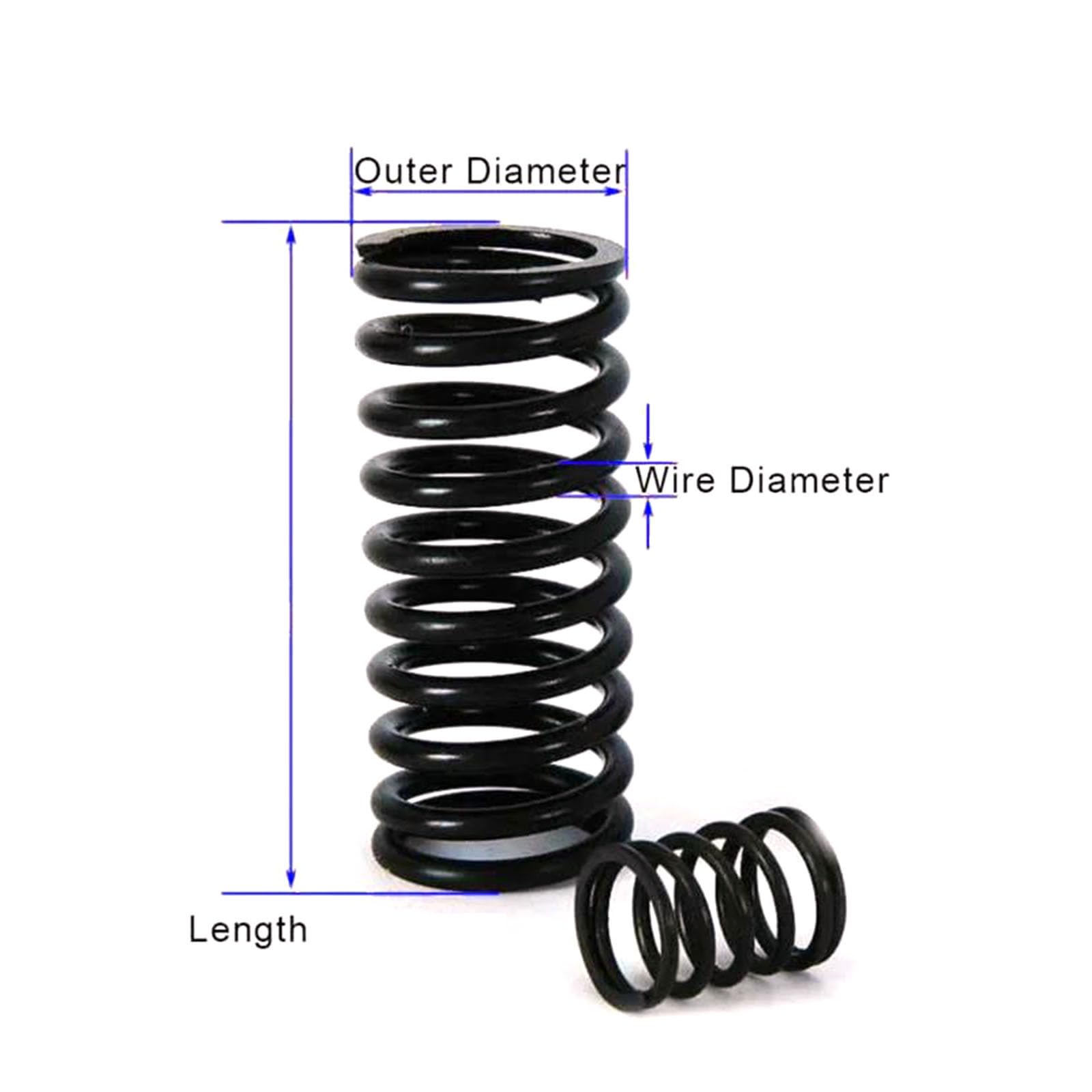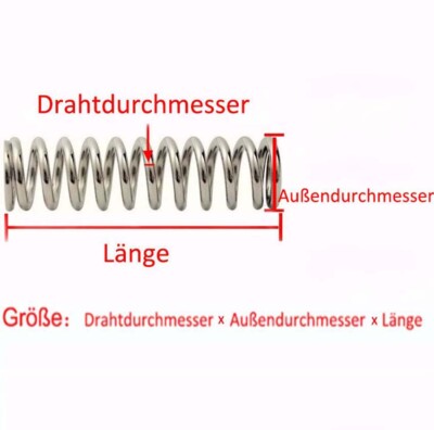 Brauchst du starke, zuverlässige Federn für dein Projekt? Diese Druckfedern aus 65Mn Federstahl sind genau das Richtige! Im 2er-Set, mit den Maßen 4mm Drahtdurchmesser, 40mm Außendurchmesser und 120mm Länge. Die Oberfläche ist geschwärzt und geschmiert - super rost- und korrosionsbeständig, hält auch draußen was aus! Beide Enden sind plan geschliffen für perfekte Vertikalität und verhindern Kratzer auf den Auflageflächen. Perfekt für alle möglichen Anwendungen: Leitern, Vibrationssiebe, Anhänger, Motoren, Trampoline, Fitnessgeräte - wo auch immer du starke Rückstellkraft brauchst! Gleichmäßiger Windungsabstand, stabile Zugkraft, keine Mängel. Wenn du größere Mengen brauchst, meld dich einfach - wir machen dir ein gutes Angebot! Qualitätsfedern, die halten, was sie versprechen.