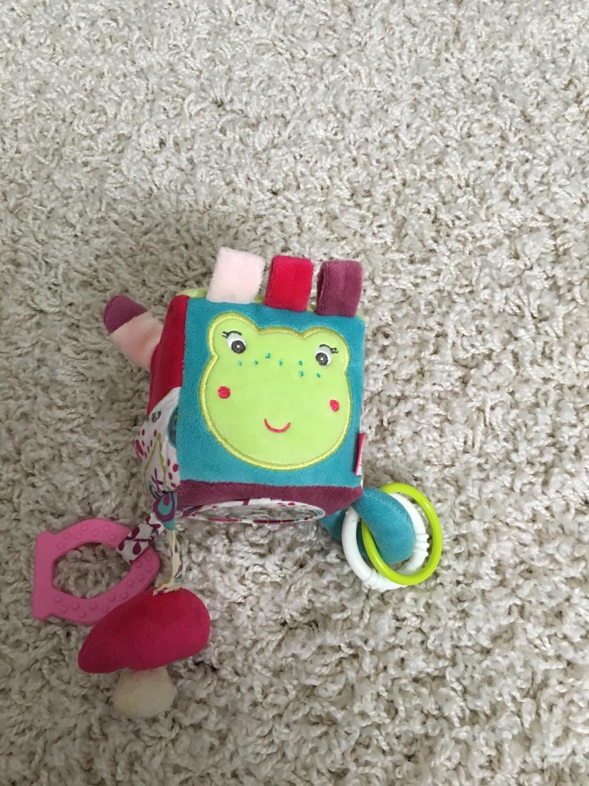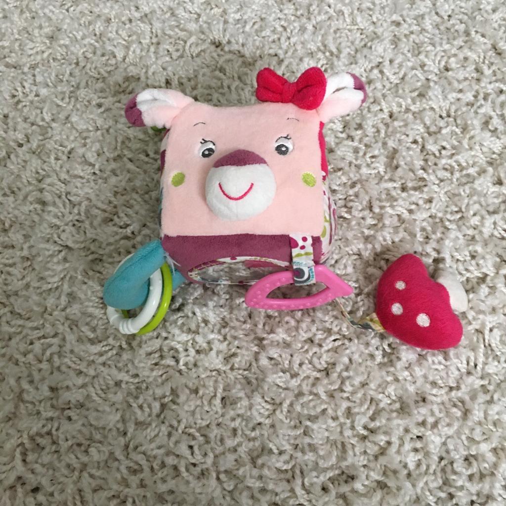 Oh wie süß! Dieser Fehn Activity-Würfel aus der Sweetheart-Kollektion ist das perfekte erste Spielzeug für dein Baby. Mit 10x10cm ist er genau die richtige Größe für kleine Hände. Der bunte Würfel bietet so viele tolle Beschäftigungsmöglichkeiten: eine kleine Perlen-Rassel, bunte Greifringe, einen weichen Beißring und einen Spiegel, in dem sich dein Baby selbst entdecken kann. Das Obermaterial aus weichem Softvelours fühlt sich angenehm an und fördert den Tastsinn. Mit dem praktischen C-Ring kannst du den Würfel überall befestigen - am Bettchen, am Kinderwagen oder an der Babyschale. So hat dein Kleines immer seinen Lieblingsspielbegleiter dabei. Das Spielzeug ist von unabhängigen Testinstituten geprüft und für Babys ab 0 Monaten sicher. Ein ideales Geschenk zur Geburt, zur Taufe oder zum Geburtstag - pädagogisch wertvoll und einfach niedlich!