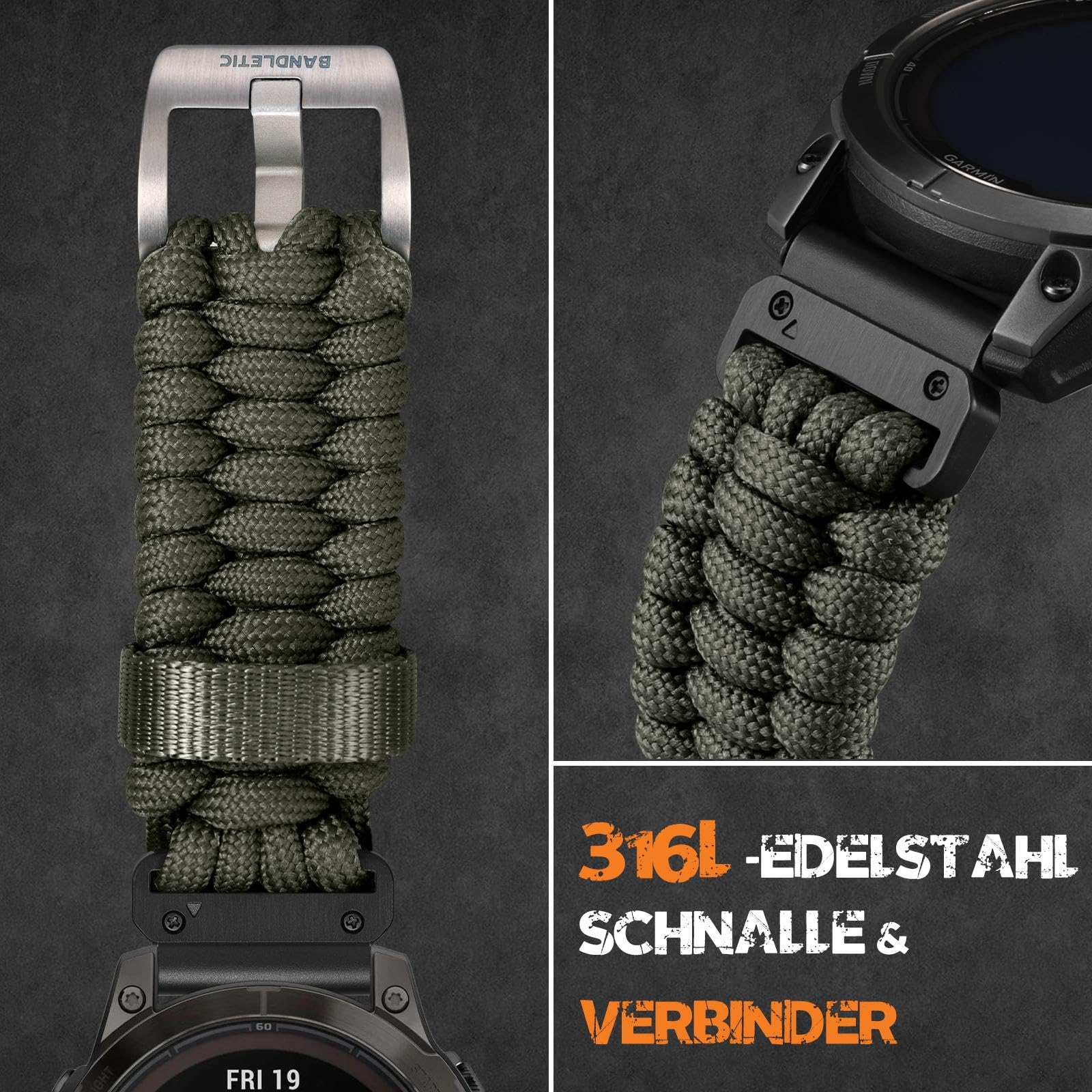 Dein Garmin Armband ist kaputt oder du willst mal was Neues? Dieses Bandletic Nylon-Armband ist die perfekte Alternative! Mit 22mm Breite passt es zu Fenix 6/7/8, Instinct, Forerunner und vielen anderen Garmin Modellen.
