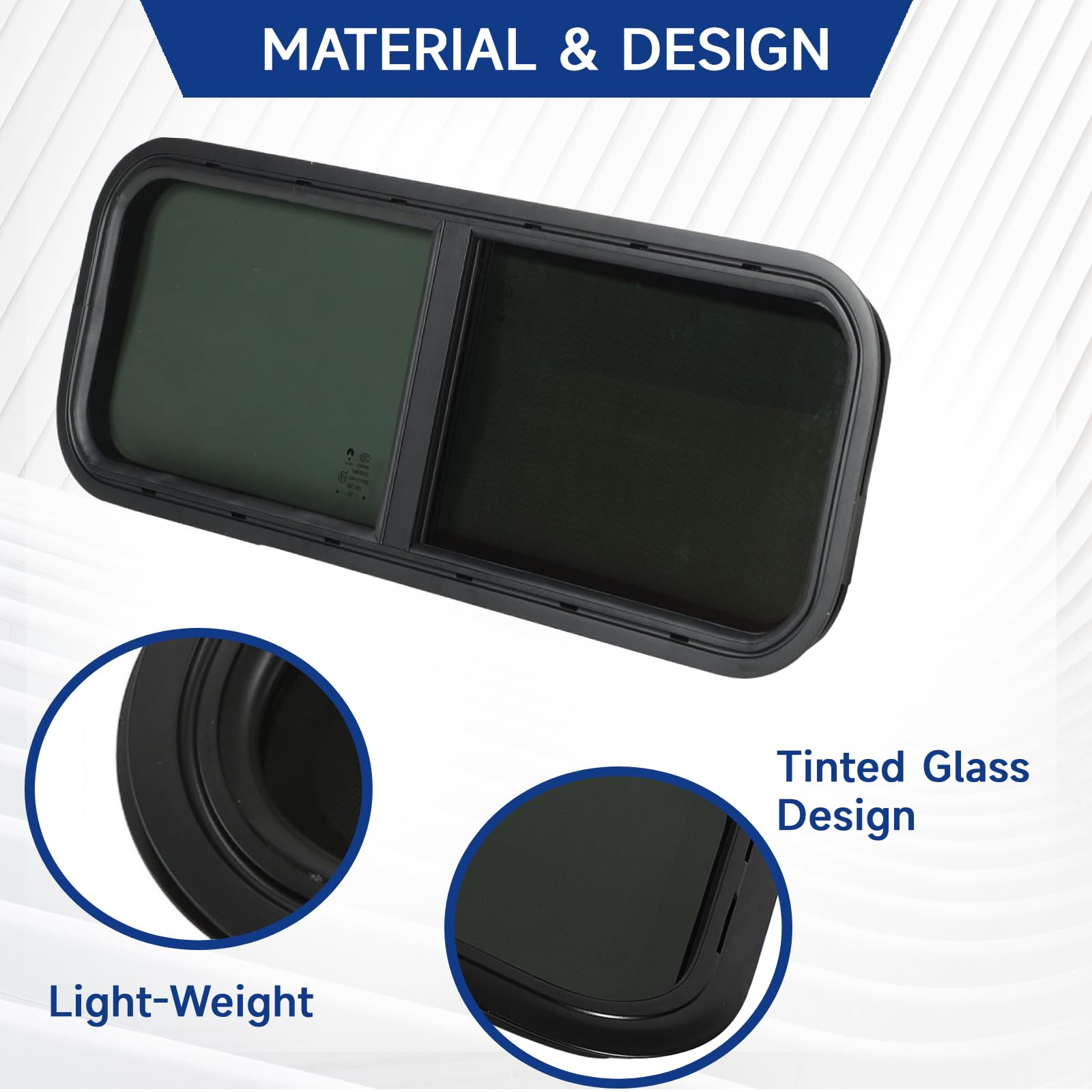 Moin Camper, dieses schwarze Schiebefenster ist ja mal genau das Richtige für deinen Ausbau! Mit 78x28cm Maßen passt es in viele Wohnmobile, Anhänger oder umgebaute Fahrzeuge. Aus stabilem Aluminium und getempertem Glas - das hält was aus! Die dunkle Scheibe schützt deine Privatsphäre, und die abgerundeten Ecken sehen einfach clean aus. Einfach einkleben und fertig - keine komplizierte Montage. Hält Regen und Sonne ab und sorgt für ein angenehmes Klima drinnen. Für Pickups, Camper oder Wohnwagen - damit wird dein Fahrzeug noch wohnlicher. Aber Achtung: Vorher genau messen, ob's passt!