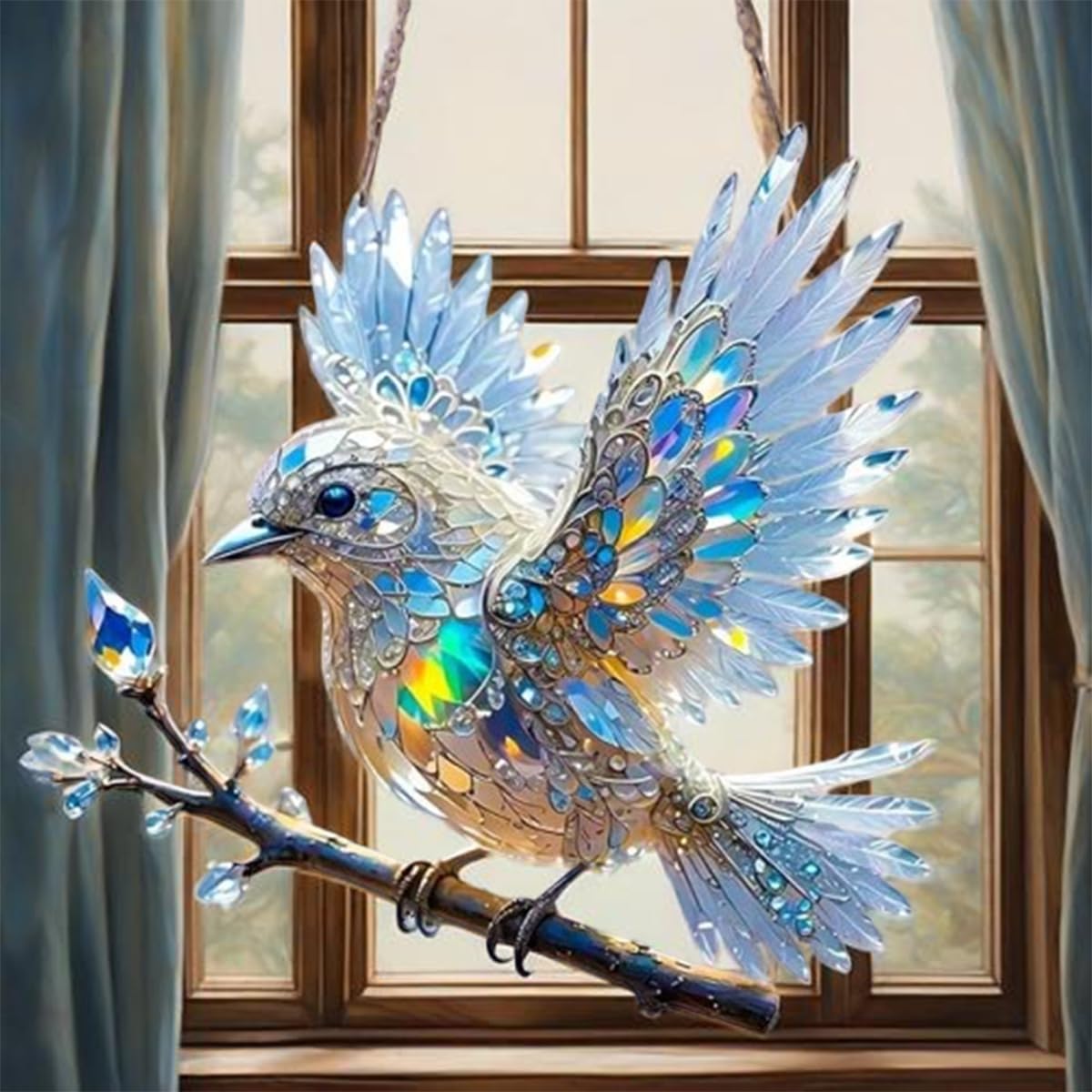 • Blaue Vogel Fensteranhänger Aus Acryl - Buntglas-Optik Für Naturliebhaber & Deko