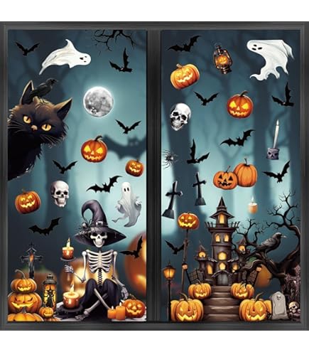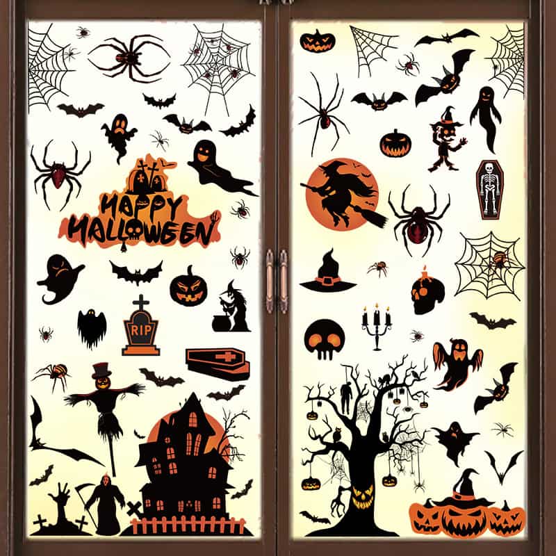 Jetzt wird's gruselig! Mit diesen 9 Halloween-Fensteraufklebern verwandelst du deine Fenster im Handumdrehen in eine gruselige Kulisse. Jeder Aufkleber misst 30x20cm und zeigt schaurig-schöne Motive wie Geister, Fledermäuse, Spinnen und Kürbisse.\n\nAus hochwertigem PVC-Material sind die Aufkleber beidseitig bedruckt - von innen und außen sichtbar! Sie lassen sich rückstandslos wieder entfernen und beschädigen die Fenster nicht.\n\nEinfache Anwendung:\n1. Fenster gründlich reinigen\n2. Schutzfolie abziehen\n3. Aufkleber auf das trockene Fenster drücken\n4. Fertig!\n\nPerfekt für:\n• Wohnzimmerfenster für gruselige Stimmung\n• Kinderzimmer für Halloween-Party\n• Haustür und Fensterfront\n• Spiegel und Glasflächen\n• Kühlschrank und Schränke\n\nDie schwarzen Silhouetten wirken besonders effektvoll, wenn Licht dahinter scheint. So entsteht eine unheimliche Atmosphäre, die jeden vorbeigehenden Nachbarn erschrecken wird!\n\nKomplett-Set mit 9 verschiedenen Motiven - genug für alle Fenster deiner Wohnung. Halloween kann kommen!