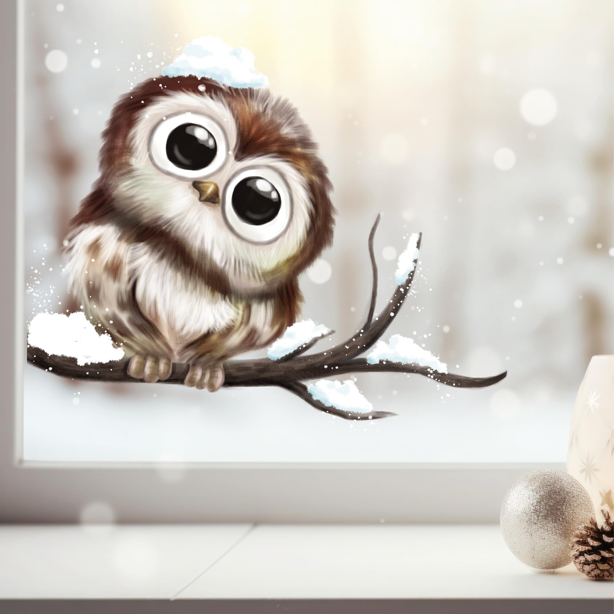 Die statischen Aufkleber haften super einfach auf Glas und allen glatten Oberflächen. Einfach abziehen, aufkleben und sich an der winterlichen Deko erfreuen!