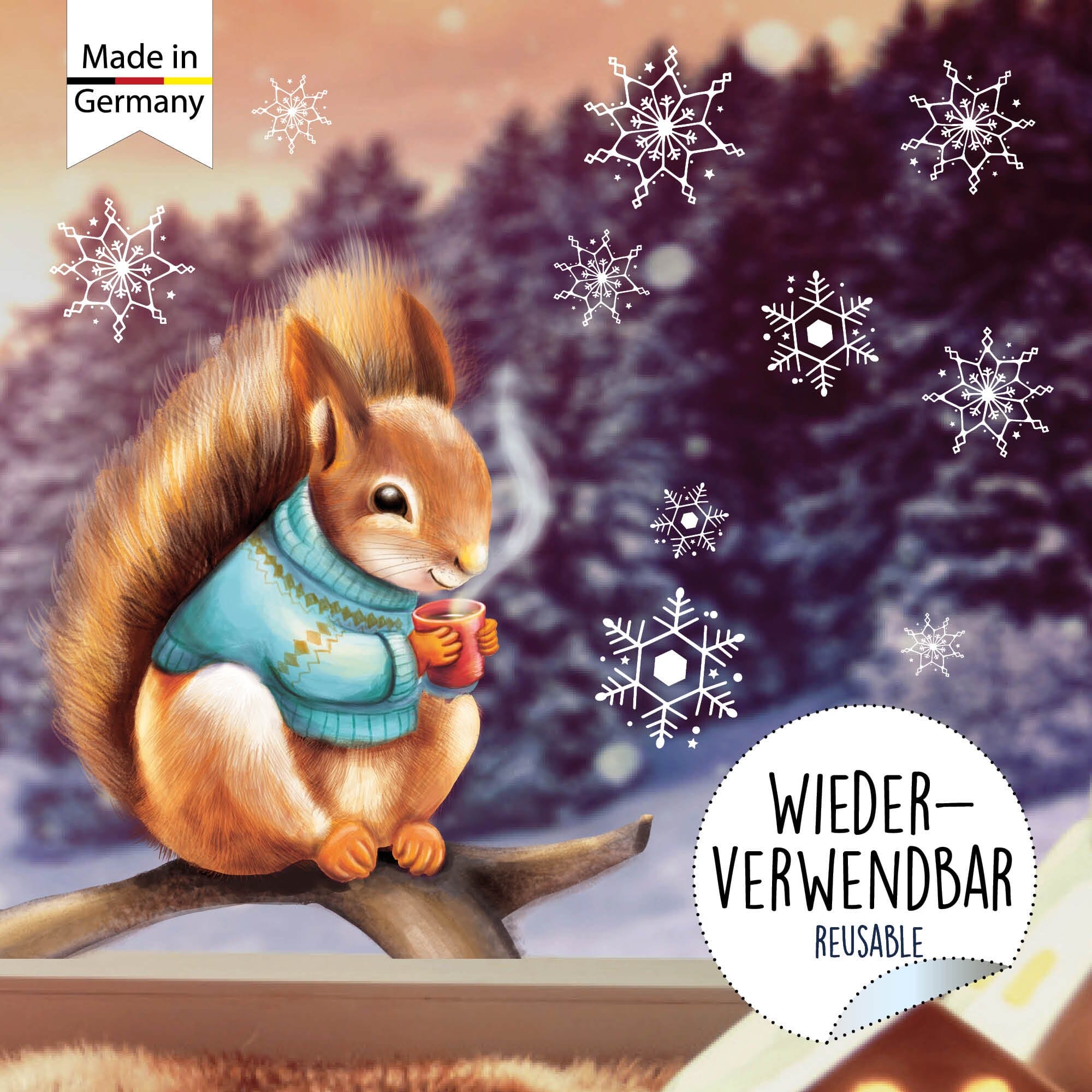 Oh, wie niedlich! Diese Fensterbilder mit den Eichhörnchen im Weihnachtspulli bringen sofort festliche Stimmung in dein Zuhause. A4 groß - also genau die richtige Größe für fast jedes Fenster.
