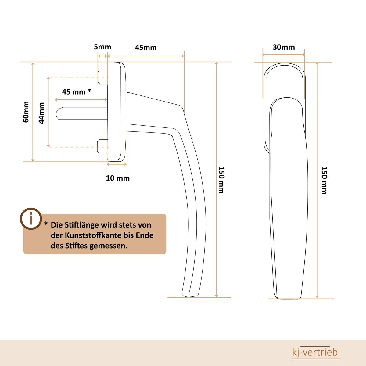 • Vierkantstift: 35mm Länge - passt zu den meisten Standardfenstern