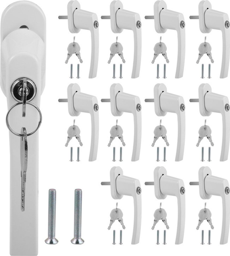 Sicherheit geht vor! Mit diesen Sterling Terrassentür- und Fensterschlössern fühlst du dich gleich viel sicherer in den eigenen vier Wänden. Das Tolle: Das Schloss ist ein Universal-Schloss und passt für die meisten Fenster, Scharnier- und Schiebetüren. Einfach auf die Oberfläche montieren - schon bist du geschützt. Funktioniert super einfach: Drücken zum Verriegeln, mit Schlüssel wieder aufschließen. Die Sicherheits-Befestigungsschrauben sind schon im Lieferumfang enthalten. Getestet bis zu 100.000 Zyklen - also richtig langlebig! Ob für deine Terrassentür, Balkontür oder Fenster - dieses Schloss gibt dir das beruhigende Gefühl, dass alles sicher verschlossen ist. Perfekt für alle, die ihre Wohnung oder ihr Haus besser sichern wollen. Einfach zu installieren, einfach zu bedienen - aber macht einen riesen Unterschied für dein Sicherheitsgefühl!