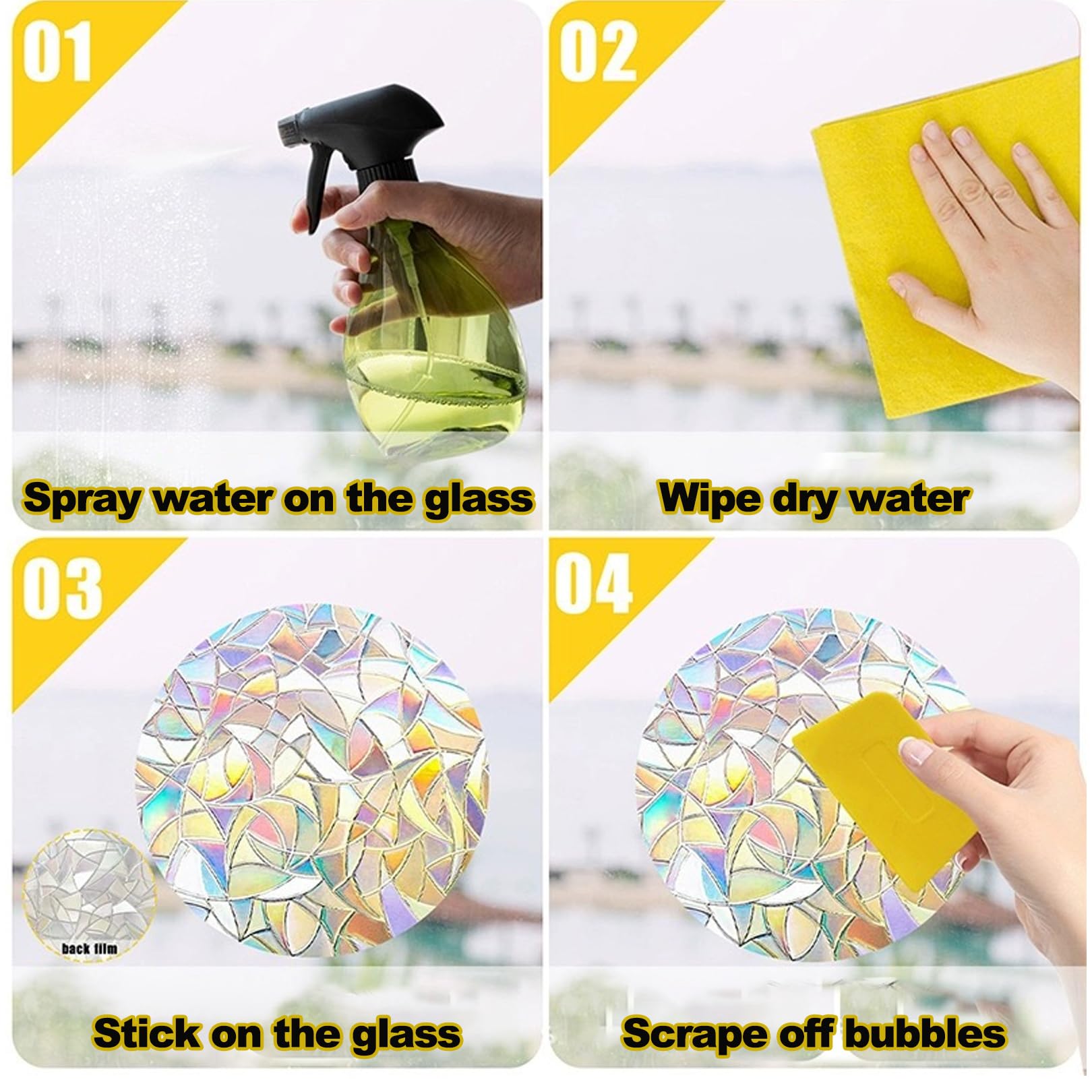 Verwandle dein Zuhause in ein buntes Farbenmeer! Dieses Set mit 39 Prisma-Fensterstickern erzeugt atemberaubende Regenbogeneffekte, sobald die Sonne scheint. Die runden Aufkleber (4-12 cm Durchmesser) haften komplett ohne Kleber - einfach mit Wasser auf Glasflächen anbringen. Aus umweltfreundlicher 0,3 mm dicker PVC Folie, geruchlos und wiederverwendbar. Neben der dekorativen Wirkung bieten die Sticker auch praktischen Vogelschutz - Vögel erkennen die bunten Reflexionen und vermeiden Kollisionen. Perfekt für Fenster, Glastüren, Wintergärten oder Büros. Einfach anbringen, Sonnenlicht genießen und sich an den magischen Farbspielen erfreuen! Mach deine Fenster zum Hingucker!
