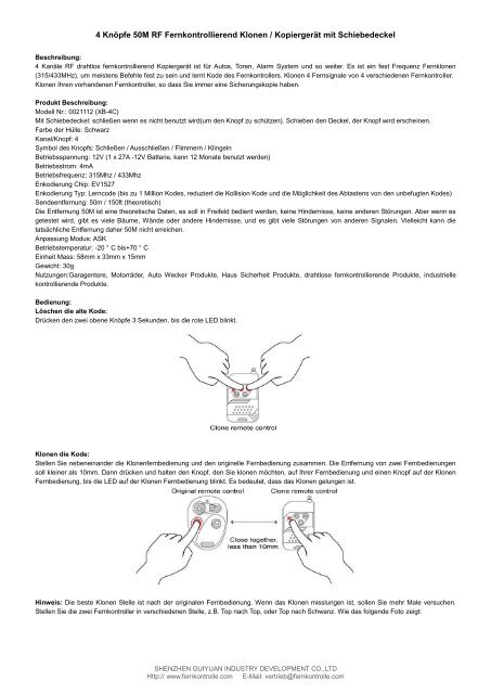 • Garagentor Fernbedienung Mit Kopierfunktion - Universal Ersatz Für Feste Codes