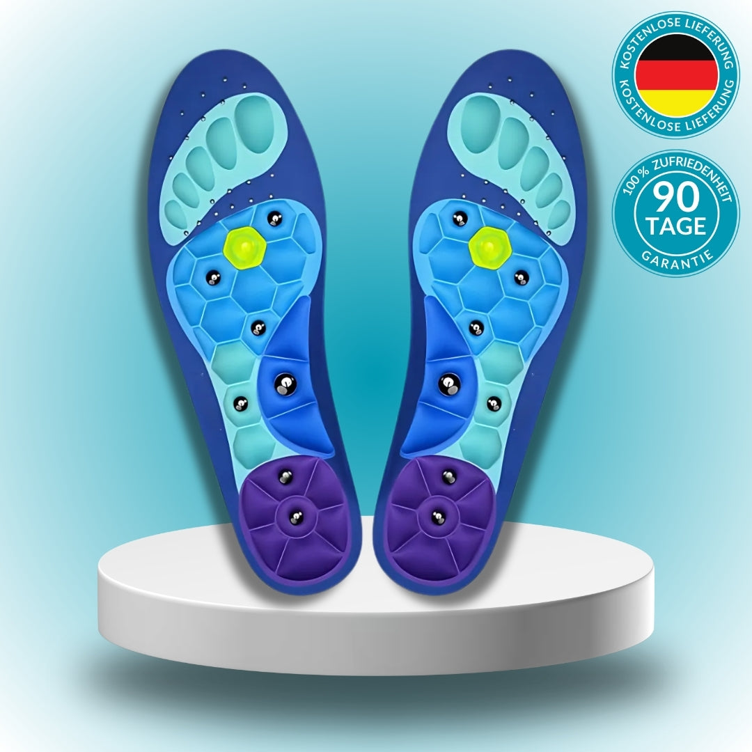 Hey, kennst du das auch? Diese lästigen Fußschmerzen nach langem Stehen oder Laufen? Dann sind diese magnetischen Einlegesohlen von L&W genau das Richtige für dich! Die sind nicht nur super bequem, sondern haben auch noch einen cleveren Akupressur-Effekt durch integrierte Magnete.\n\nAlso, was bringt dir das konkret? Die 7 Magnete sind genau an den wichtigen Akupunkturpunkten deiner Fußsohlen platziert. Das stimuliert nicht nur die Durchblutung, sondern lindert auch müde Füße. Echt praktisch, oder? Besonders wenn du unter Fersensporn, Plantarfasziitis oder einfach nur unter schmerzenden Füßen leidest.\n\nDas Material ist aus hochwertigem EVA - mega elastisch und gleichzeitig stabil. Die dreischichtige Struktur dämpft jeden Schritt super ab und entlastet so deine Füße, Knöchel und Knie. Die verdickte Ferse gibt extra Komfort und die Seitenflügel stützen dein Fußgewölbe perfekt.\n\nUnd das Beste: Du kannst die Einlagen einfach auf deine Schuhgröße zuschneiden! Passen in fast alle Schuhe und sind in den Größen S (36-40), M (41-43) und L (44-47) erhältlich. Einfach reinlegen und sofort mehr Komfort genießen.\n\nOb für die Arbeit, beim Sport oder einfach im Alltag - diese Einlegesohlen machen jeden Schritt angenehmer. Die rote Farbe sieht dabei auch noch richtig stylisch aus! Also, wenn du deinen Füßen mal was Gutes tun willst, probier's einfach aus. Deine Füße werden's dir danken!\n\nAch ja, und keine Sorge - die Magnete sind schwach genug, dass sie völlig unbedenklich sind, aber stark genug um zu wirken. Einfach ausprobieren und den Unterschied spüren!