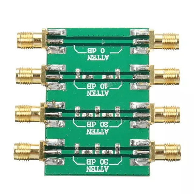 Professionelle HF-Technik für deine Elektronik-Projekte! Dieses 2er Set Festdämpfungsglieder deckt den Frequenzbereich DC-4,0GHz ab und handhabt bis zu 200mW (23dBm). Mit SMA-Buchsen (Female) für einfachen Anschluss. Verfügbar in verschiedenen Dämpfungswerten: 0dB (Referenz), 10dB, 20dB und 30dB. Stehwellenverhältnis unter 1,20 bei 50Ω Systemimpedanz. Die einteilige Konstruktion ohne Grate und die doppelseitige Leiterplatte (1,6mm) garantieren Zuverlässigkeit. Perfekt für Labor, Amateurfunk oder professionelle Anwendungen. Kompaktes Design, leicht und einfach zu installieren - genau das richtige für präzise Signalaufbereitung!