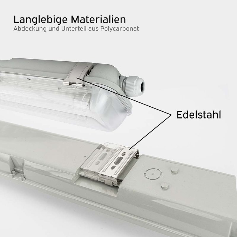 Einfache Installation - mit Schraubendreher an Decke oder Wand befestigen, Leuchte einklicken, fertig! Flimmerfrei und blendfrei mit 180° Abstrahlwinkel. Spart bis zu 80% Stromkosten im Vergleich zu alten Leuchtstoffröhren. Perfekt für Lagerhallen, Werkstätten, Garagen oder Warenhäuser!