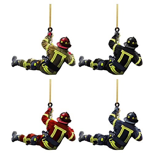 Feuerwehr-Fans aufgepasst! Diese 4 feuerroten Weihnachtsbaum-Anhänger bringen echten Feuerwehr-Style an deinen Christbaum. Jedes Stück zeigt Feuerwehrleute in verschiedenen Positionen - super detailliert und in knalligen Farben gedruckt. Einfach die Schutzfolie abziehen und das Acryl-Material kommt richtig zur Geltung. Mit den beiliegenden Bändern kannst du sie ganz easy am Baum, an der Wand oder sogar am Fenster aufhängen. Perfektes Geschenk für Feuerwehrleute, deren Familien oder einfach alle, die die Feuerwehr lieben. Ob zu Weihnachten oder als Geburtstagsgeschenk - damit machst du garantiert Freude! Auch toll für die Feuerschutz-Party oder als Auto-Deko. Einfach abziehen, aufhängen und staunen!