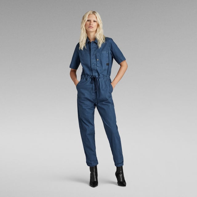 Stylish und praktisch zugleich! Dieser G-STAR RAW Jumpsuit für Damen im Straight Fit sitzt perfekt. Mit praktischem Stehkragen, halblangen Ärmeln und verdeckten Druckknöpfen vorne. Der gewebte Gürtel lässt sich anpassen für die perfekte Taille. Geräumige Oberschenkeltaschen und Eingrifftaschen mit Druckknopfverschluss - alles hat seinen Platz. Ob für den Alltag oder besondere Anlässe - dieser Overall macht immer eine gute Figur. G-STAR RAW Qualität die sich sehen lassen kann!