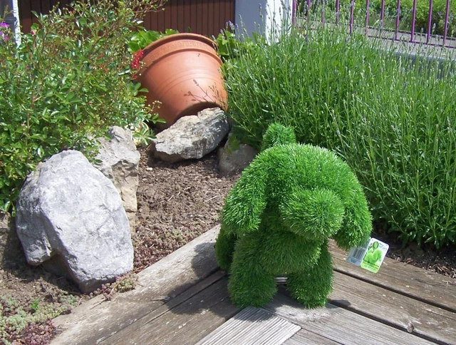 Dieser süße Kunstrasen-Hund von Kögler bringt Leben in deinen Garten! Die Figur ist ca. 36x20x33cm groß und sieht aus wie echtes Gras - nur dass sie immer grün bleibt. Super weich wie ein Plüschtier, aber komplett wetterfest. Egal ob Sonne, Regen oder Hagel - dieser Hund hält alles aus ohne seine Farbe zu verlieren. Mitgelieferte Zeltnägel sorgen für festen Halt. Perfekt für Vorgarten, Terrasse oder Wohnzimmer. Ein echter Hingucker, der immer frisch aussieht! Einfach aufstellen oder festankern und sich über den grünen Begleiter freuen.