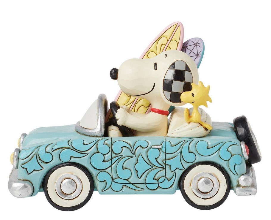 • Jim Shore Peanuts Figur - Snoopy Und Woodstock Auf Surfbrett Auto-Accessoire