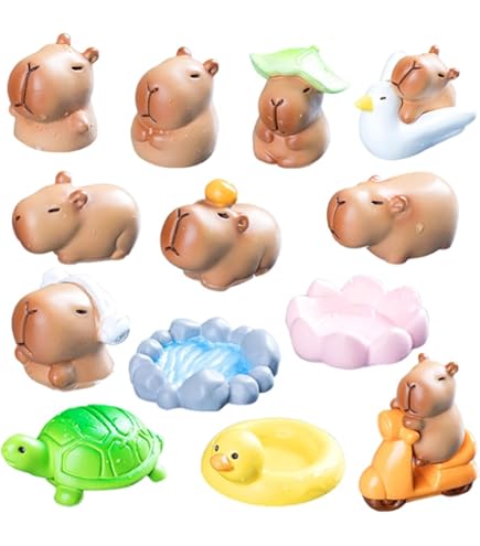 Wie süß sind denn diese kleinen Capybaras? 17 verschiedene Mini-Figuren aus robustem Harz, alle handbemalt und in verschiedenen niedlichen Posen. Perfekt für deine Miniatur-Landschaften, Dioramen oder einfach als süße Deko!