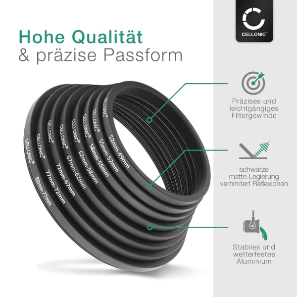 Dieser geniale Adapter macht's möglich: Du kannst alle deine 28mm Filter und Vorsätze an Objektiven mit 43mm Gewinde nutzen! Aus hochwertigem, mattschwarz eloxiertem Aluminium - schützt dein Objektivgewinde und verhindert Reflexionen. Passt perfekt und ist einfach zu montieren. Markenunabhängig - wichtig ist nur der Filterdurchmesser. Super für alle Fotografen, die ihr Zubehör flexibel nutzen wollen. Spart Geld, weil du nicht für jedes Objektiv separate Filter kaufen musst. Einfach aufschrauben und loslegen! Perfekte Passgenauigkeit - kein Wackeln, kein Verkanten. Ein muss in jeder Fototasche!