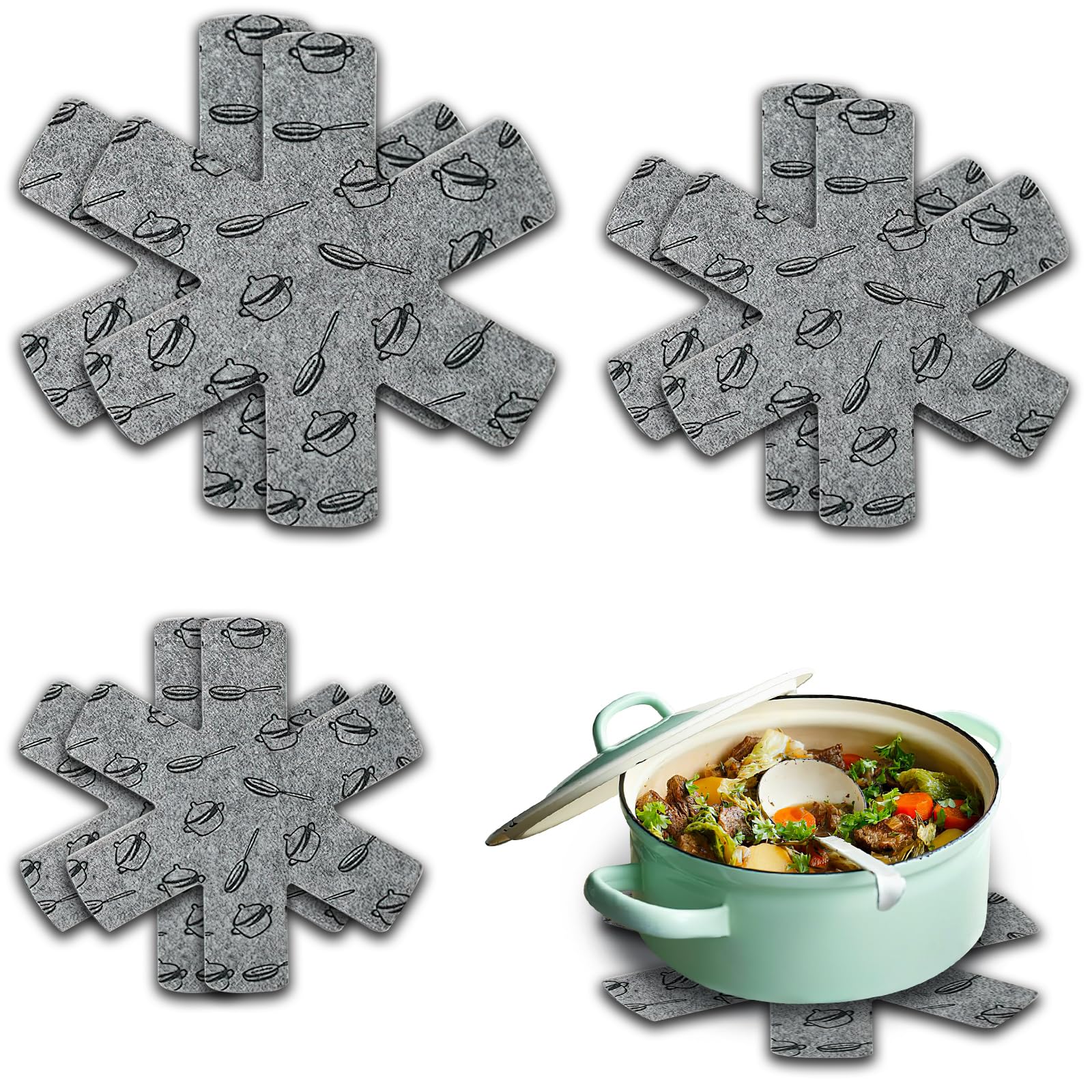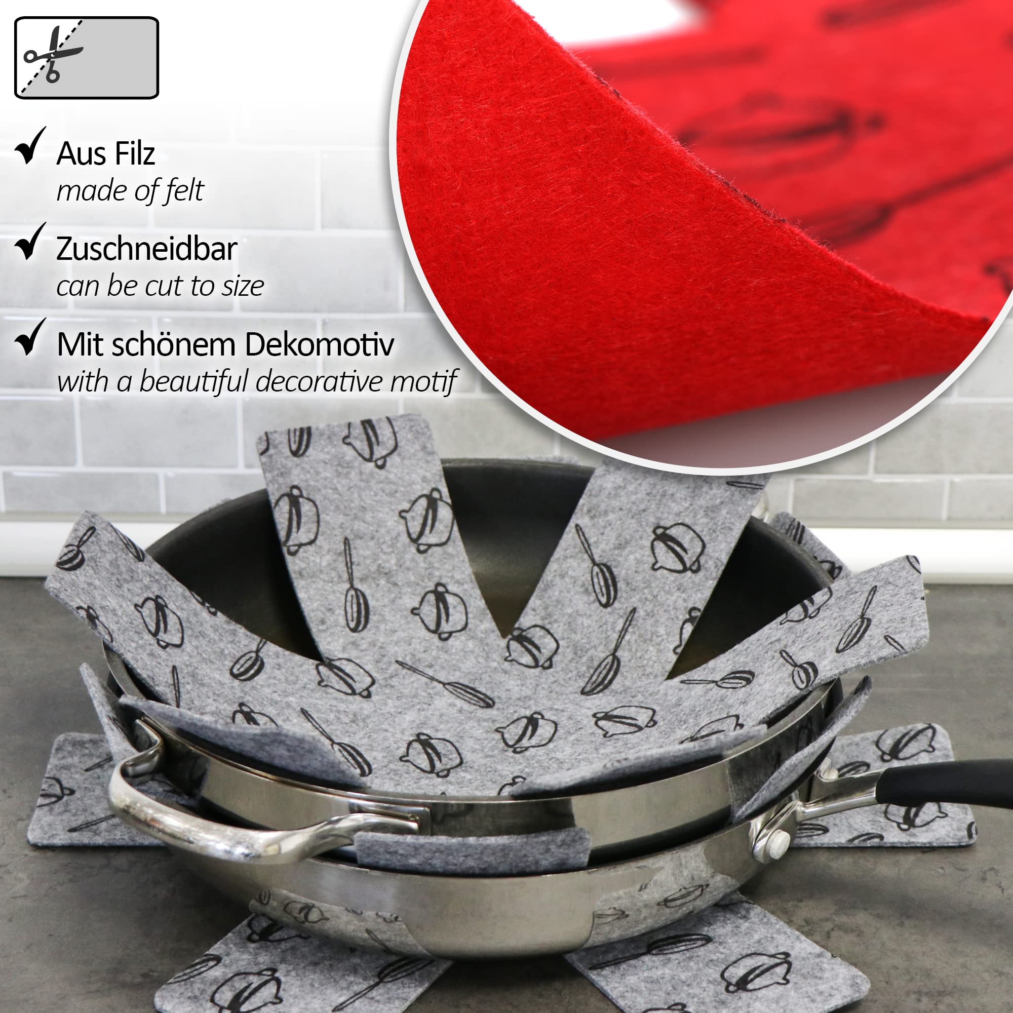 • MeoZynxadril 8er-Set Pfannenschoner Aus Filz - 38cm Graue Stapelmatten Für Töpfe & Pfannen