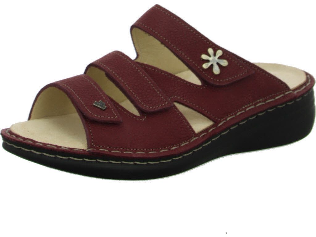 Finn Comfort Hellas Damen Pantolette | Echtleder In Wine | Mit Wechselfußbett & Klettverschluss