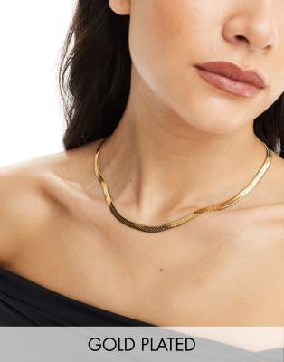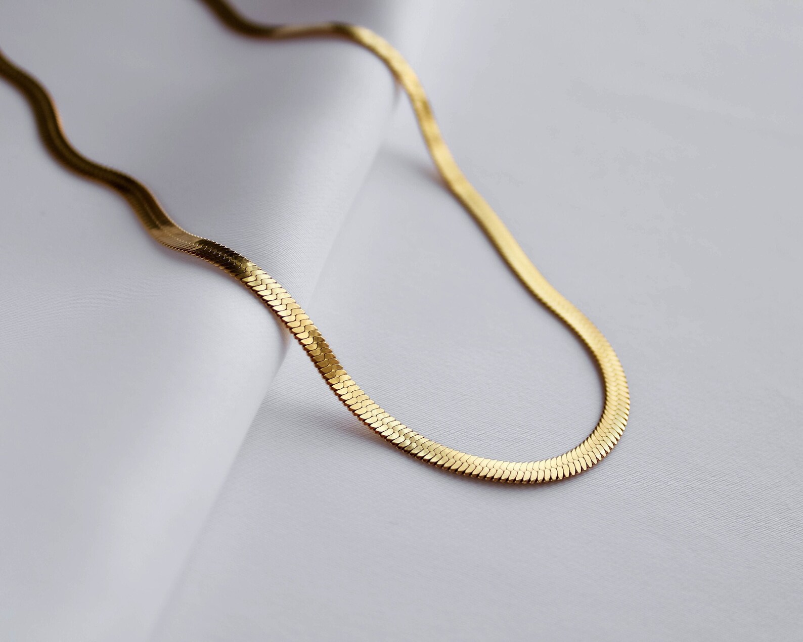 Finrezio Damen Kette Gold 14K Vergoldet - Schlangenkette Choker Mit Fischgräten Design Verstellbar