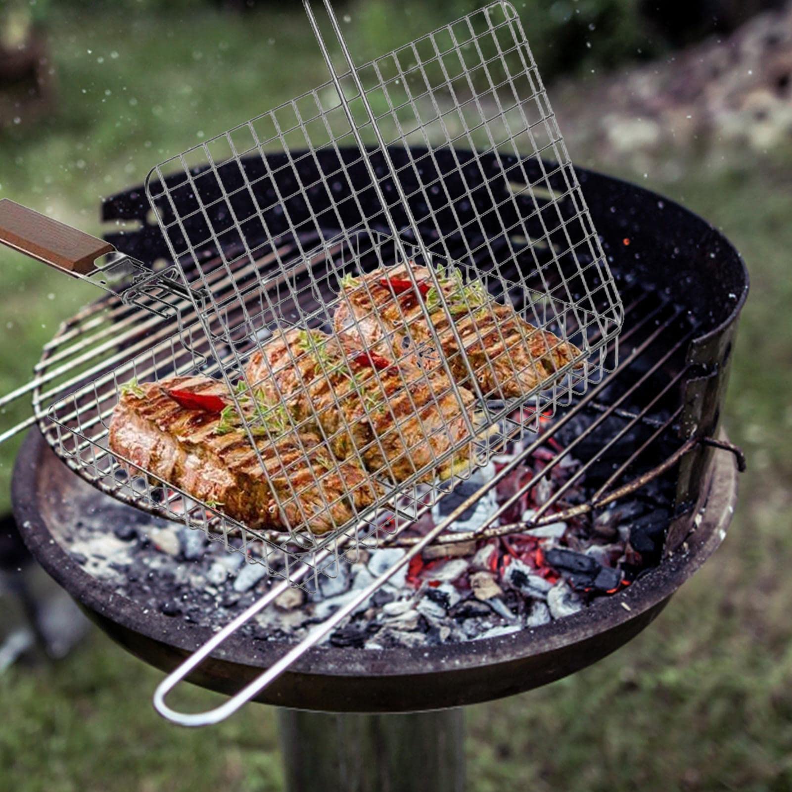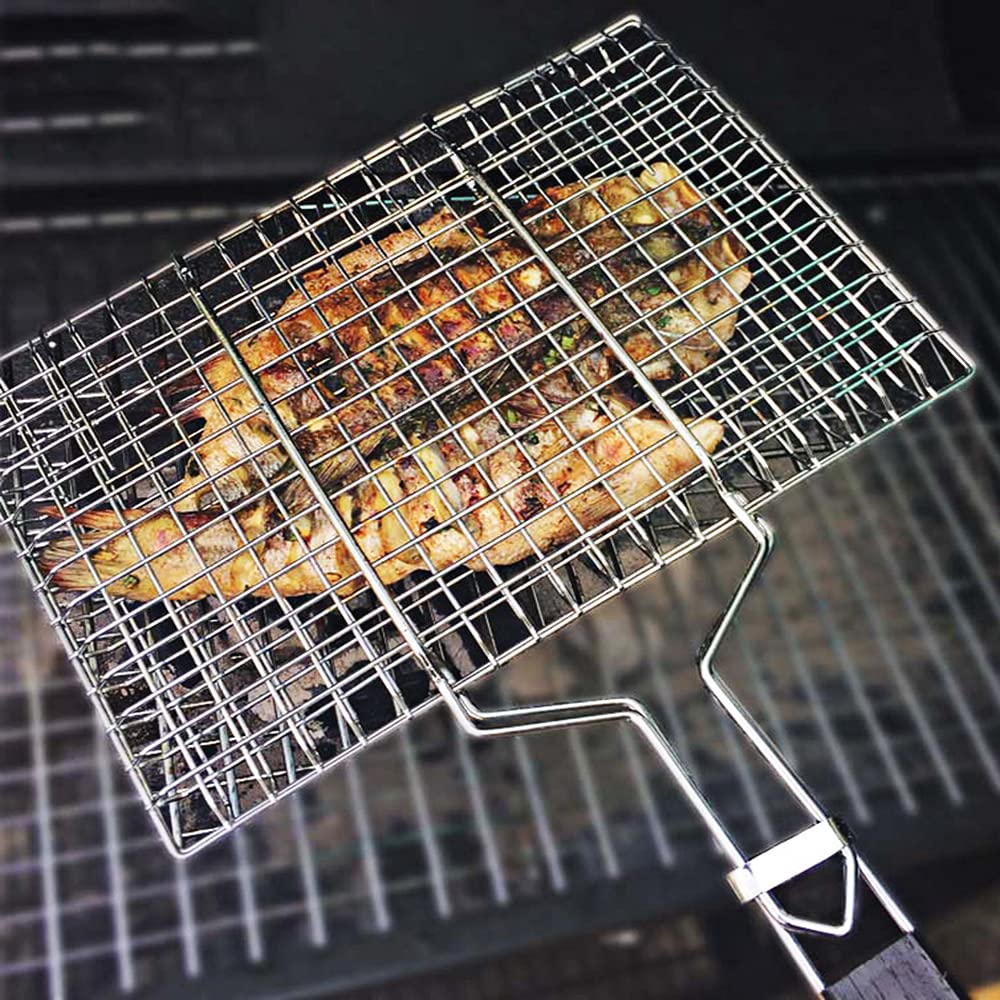 Grillen war noch nie so einfach! Dieser Fischgrillkorb aus Edelstahl ist absolut rostfrei - nichts klebt an und die Reinigung geht ratzfatz. Mit nur 439g super leicht und platzsparend, ideal für unterwegs. Der stabile Holzgriff bleibt immer kühl, selbst wenn's heiß wird. Nicht nur für Fisch super - auch Gemüse, Fleisch oder was du sonst noch grillen willst, passt da rein. Ob Camping, Wandern oder einfach nur ein gemütliches Picknick - dieses Teil ist immer dabei. Einfach befüllen, auf den Grill legen und wenden - so einfach kann Grillen sein. Deine Outdoor-Kocherlebnisse werden damit noch besser!