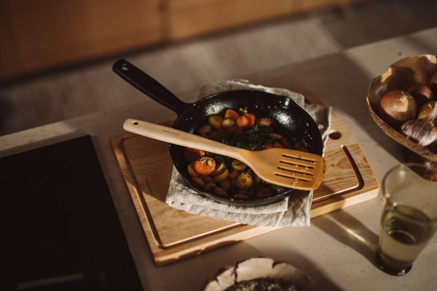 • Fiskars Folken Pfannenwender Aus Ahornholz - Schonend Für Beschichtete Pfannen Mit Abtropffunktion