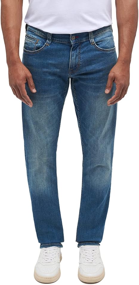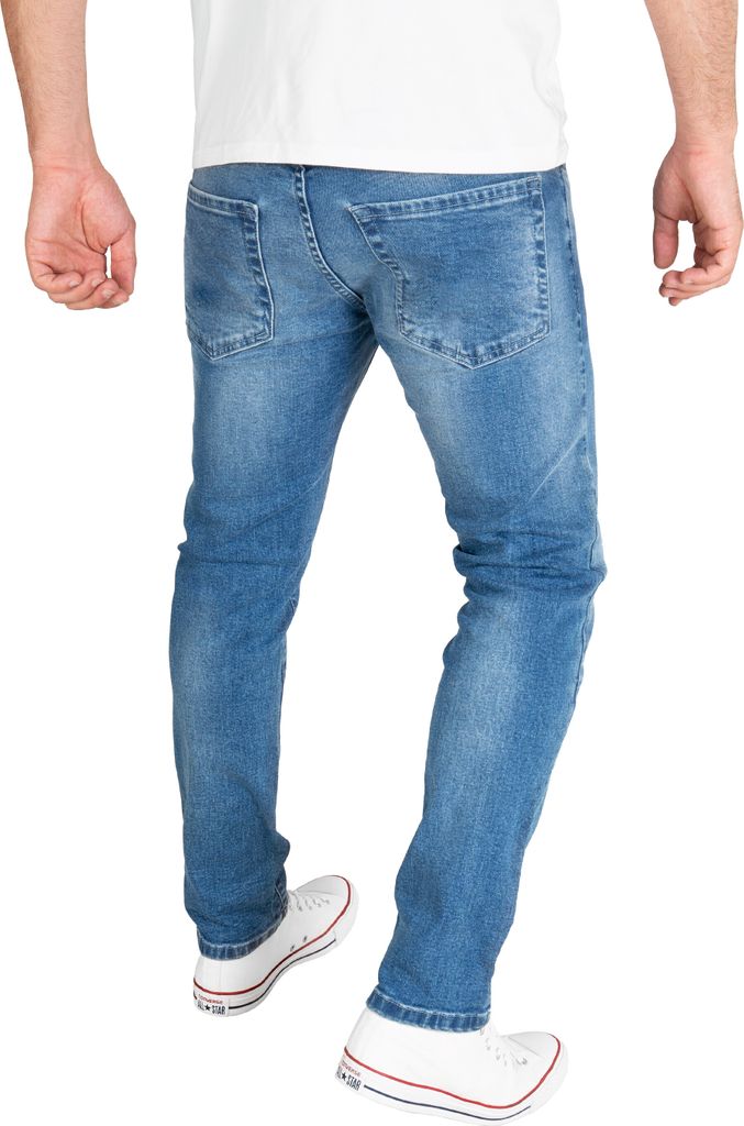 Suchst du eine Jeans, die modern aussieht aber trotzdem bequem ist? Diese Slim Fit Jeans ist genau der richtige Kompromiss! Sie sitzt an Hüfte und Oberschenkeln eng an und läuft zum Bein hin schmal aus - gibt dir also diese schlanke Silhouette die gerade voll im Trend ist. \n\nDas Besondere: Der mittelschwere Denim-Stoff hat einen leichten Stretch-Anteil. Sieht aus wie klassische Jeans, ist aber viel bequemer! Und das Beste - sie leiert nicht aus, auch nicht nach häufigem Waschen. \n\nMit 5-Taschen-Design, Reißverschluss und Knopfverschluss - alles was eine gute Jeans braucht. Die Nieten sorgen für Stabilität und diesen authentischen Jeans-Look. Die Beinöffnung ist mit 18,4 cm schmal geschnitten. Perfekt für legere Anlässe aber auch mal für was Eleganteres. Ob zur Arbeit, zum Ausgehen oder einfach so - mit dieser Jeans bist du immer gut angezogen!